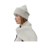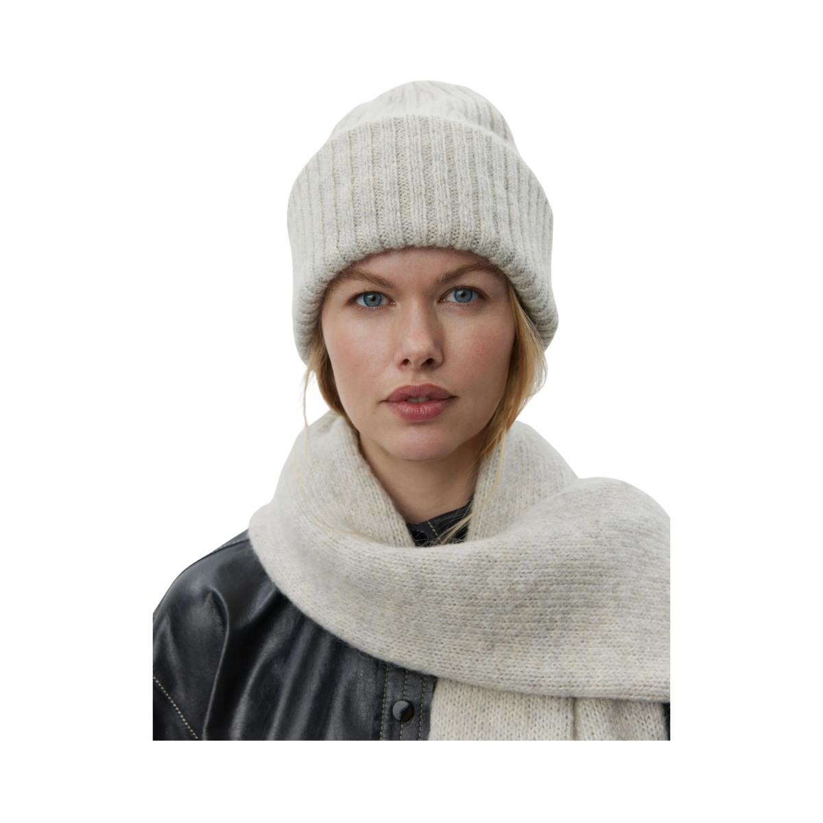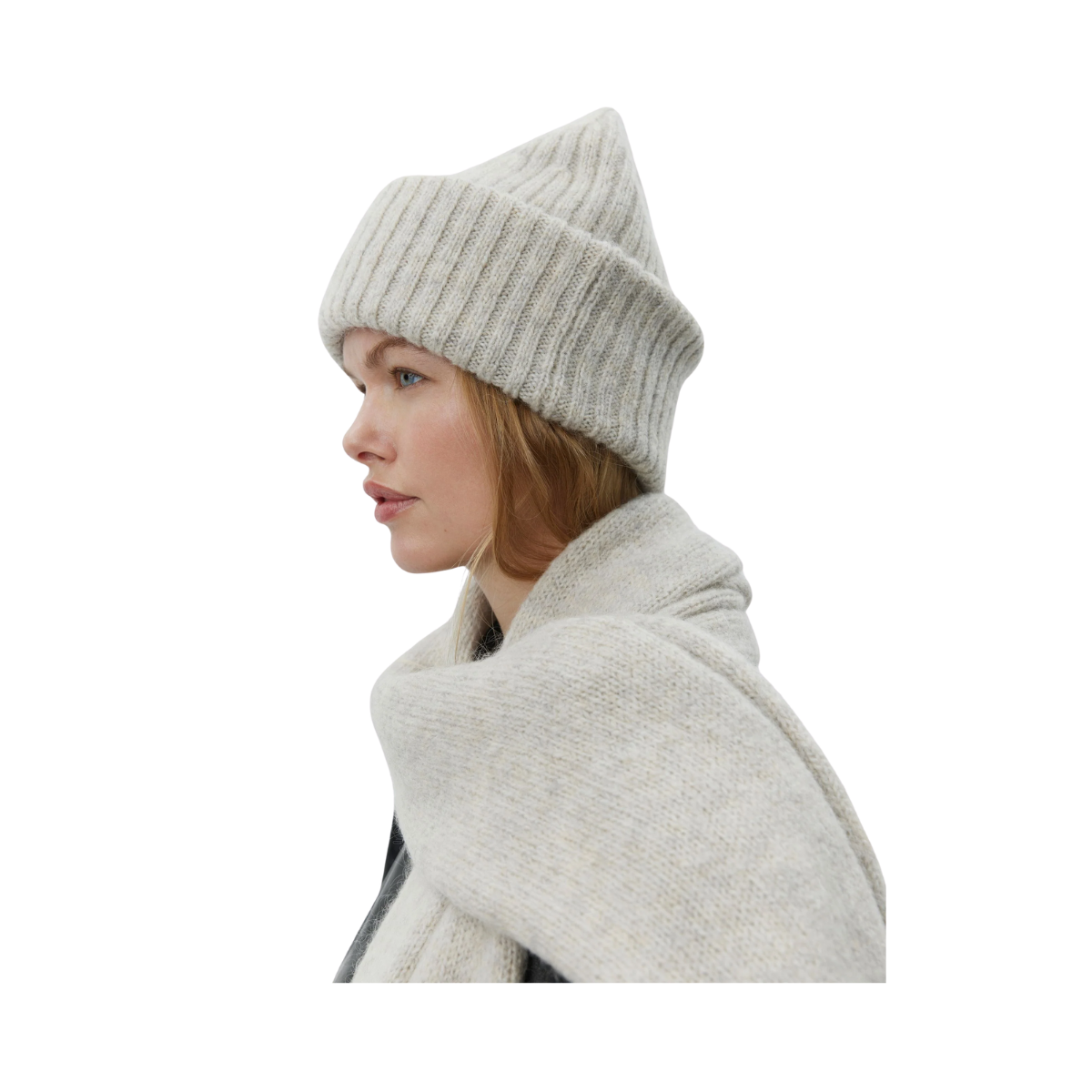 Ribbstickad mössa i mjuk mohairblandning med tjock uppvikt kant. En varm och stilren accessoar som kombinerar komfort med tidlös design.