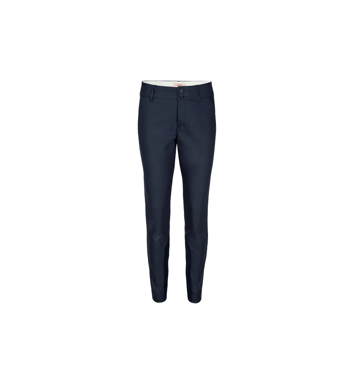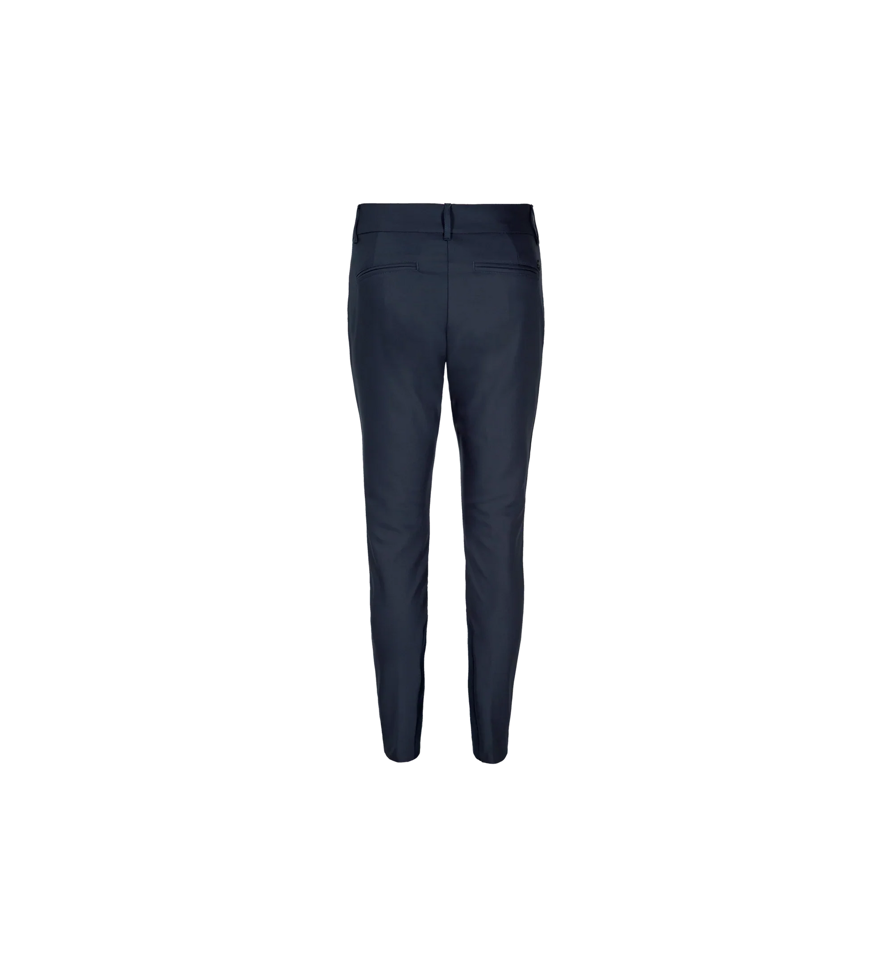 Detta är byxan som balanserar stil och komfort perfekt. Med slim‐passform och hög midja formar den siluetten snyggt, samtidigt som materialmixen med bomull, återvunnen polyamid och elastan ger mjukhet och stretch hela dagen. Byxan har en skrynkelfri finish och ribbad fåll för en sportig men ändå uppklädd look