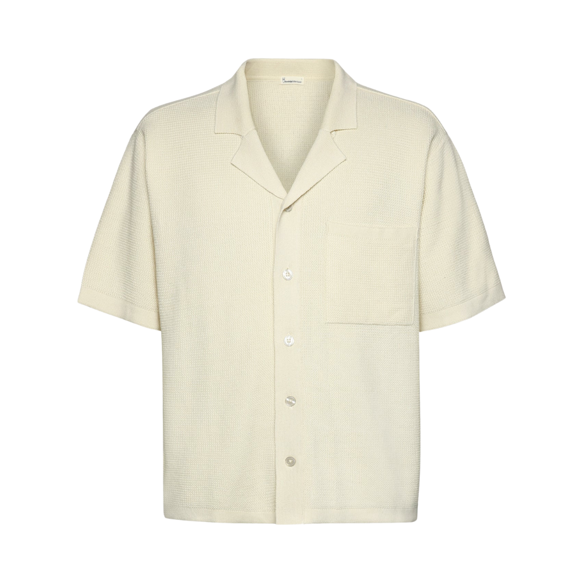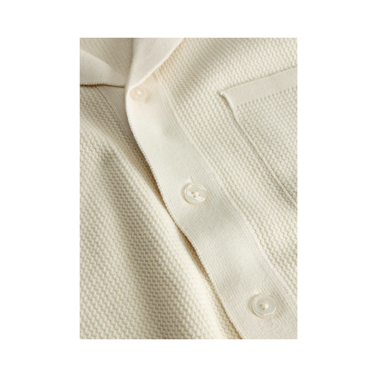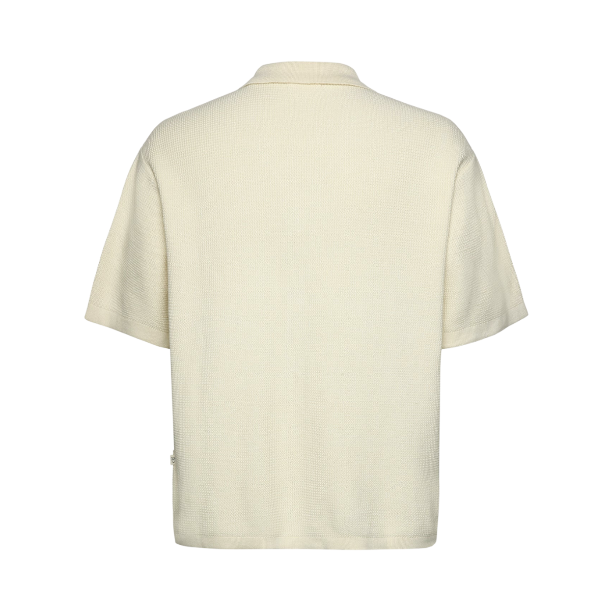 Boxy Short Sleeve Structured Knitted Shirt - Egret