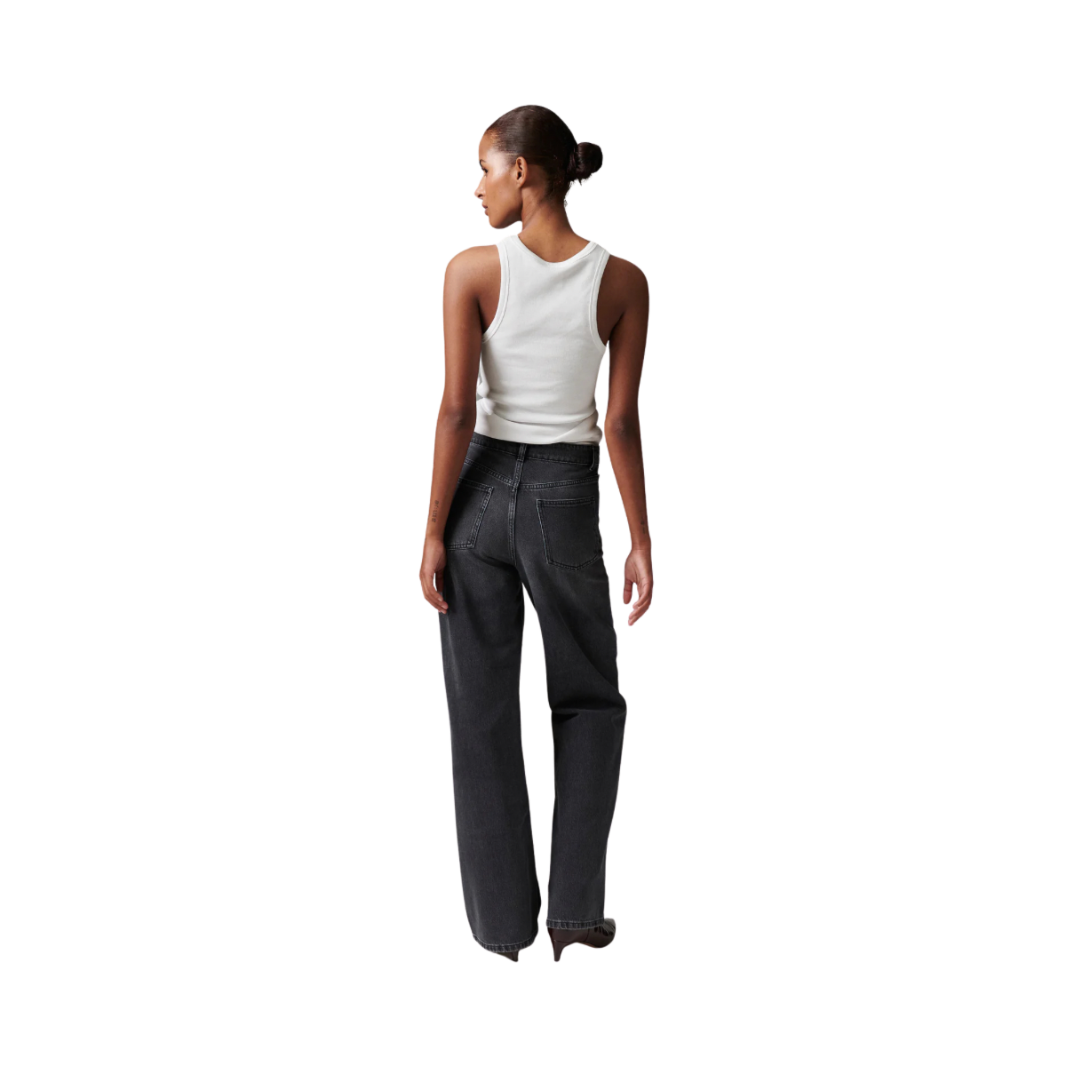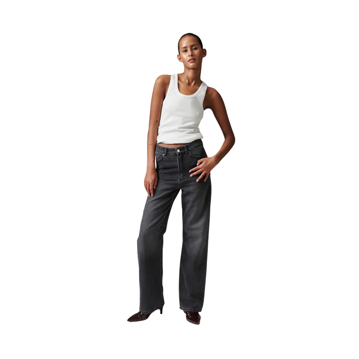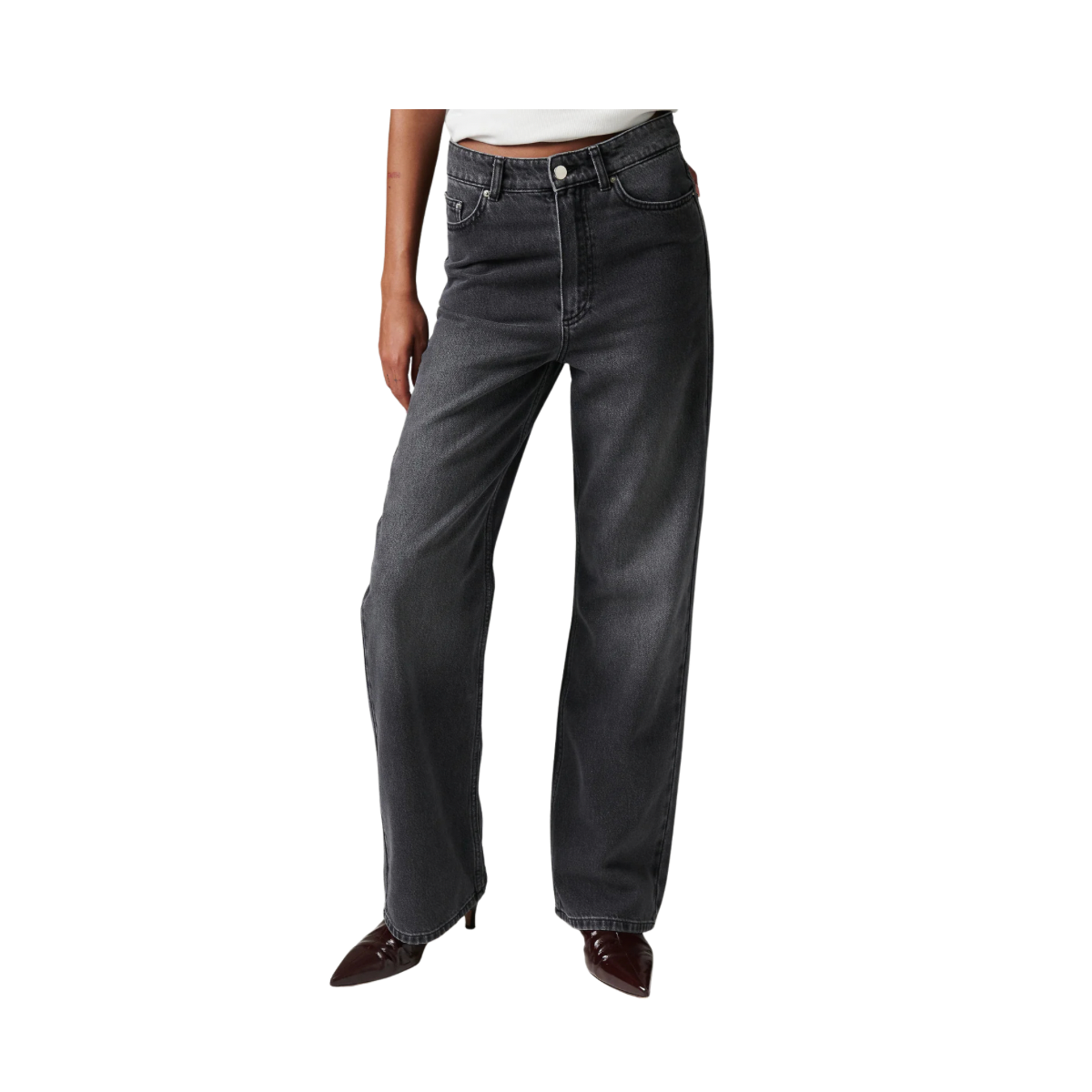 Jeans med hög midja och tidlös design. Modellen har fem klassiska fickor, vida ben samt gylf med dragkedja och knappstängning. Smickrande smal passform över midja och höfter för en stilren siluett.