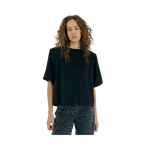 En lös topp med ren silhuett och subtil struktur. Tillverkad i en mjuk viskosblandning som ger lättskött stil för både vardag och mer uppklädda tillfällen. Toppen har en slits på ryggen med medellånga fransdetaljer som tillför en lekfull och elegant touch.