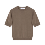 En tunnstickad tröja i t-shirtmodell med rund halsringning och ribbade avslut vid ärmar och fåll. Tröjan har en normal passform och är perfekt att matcha med höga byxor för en klassisk och professionell look.