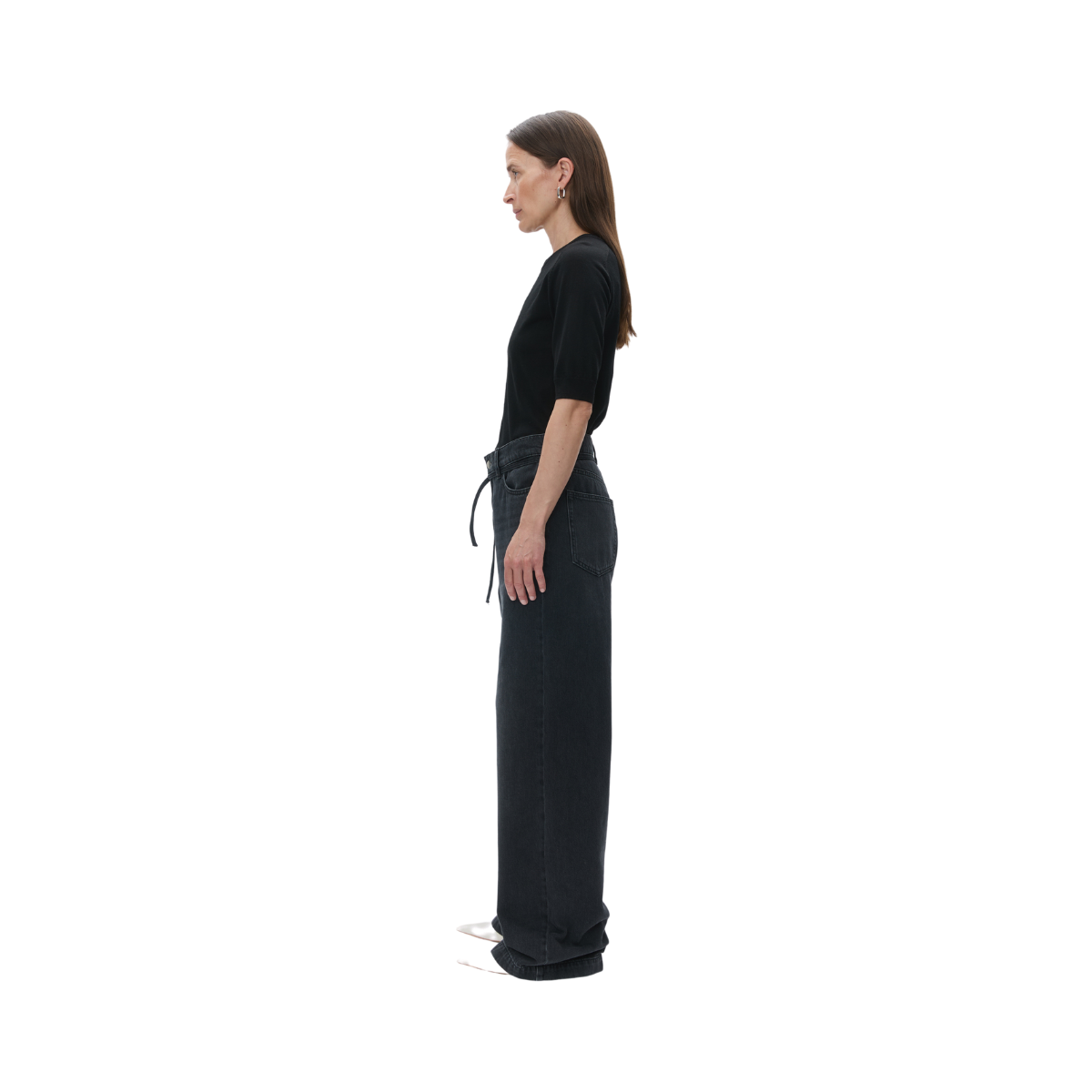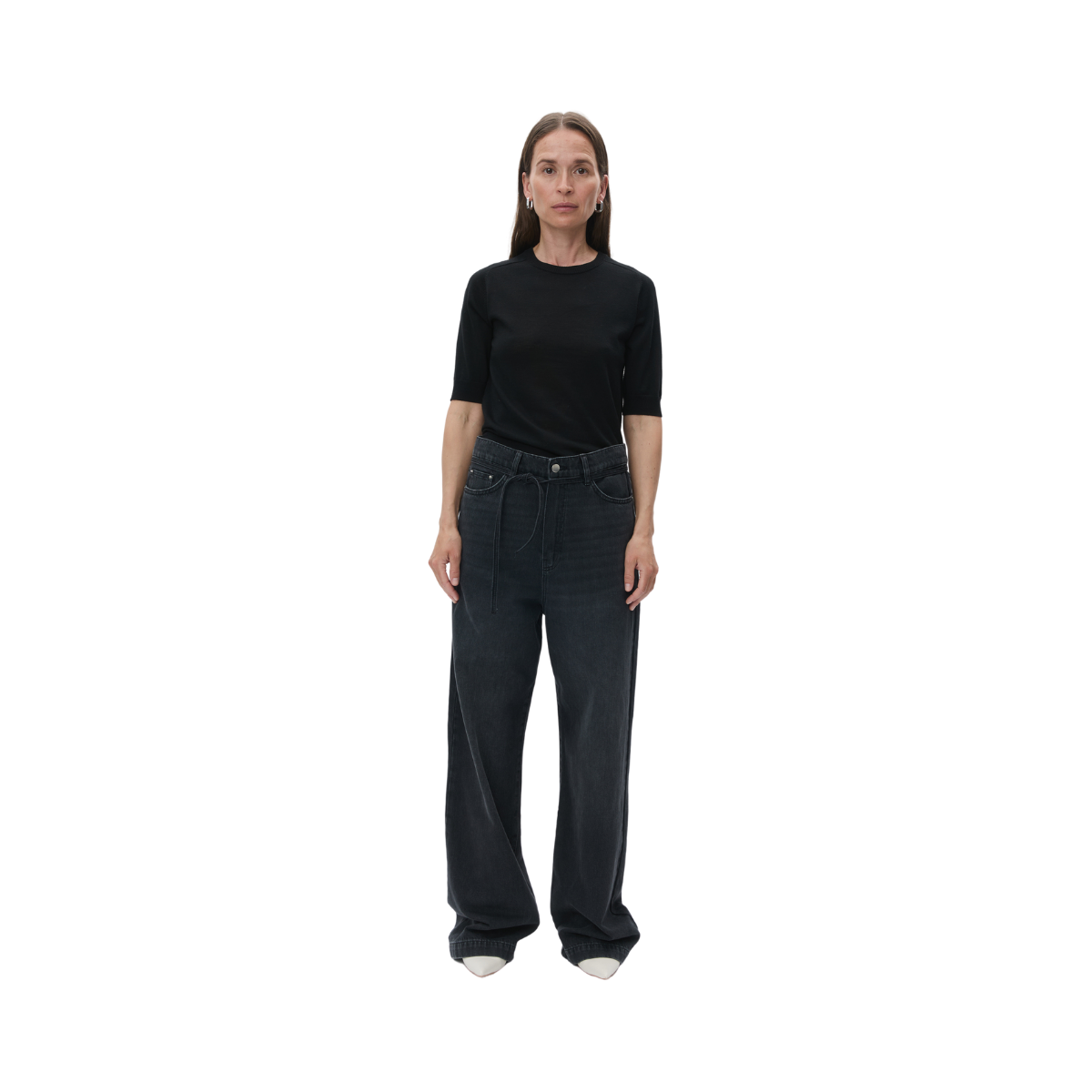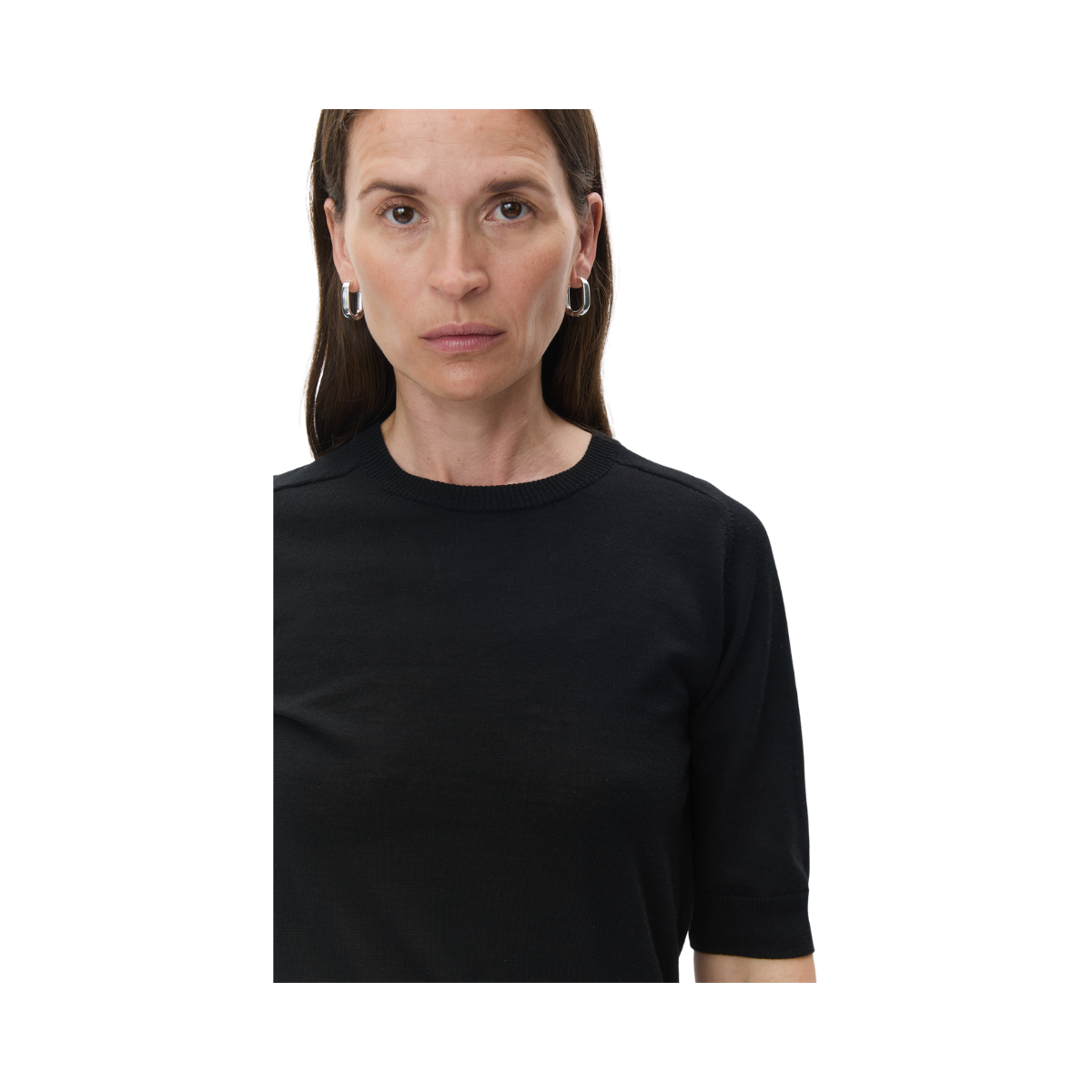 En tunnstickad tröja i t-shirtmodell med rund halsringning och ribbade avslut vid ärmar och fåll. Tröjan har en normal passform och är perfekt att matcha med höga byxor för en klassisk och professionell look.