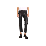 Styckpris / perSvarta stretchiga byxor i skinn från Norr. Byxorna är högmidjade, har raka ben och är croppade.