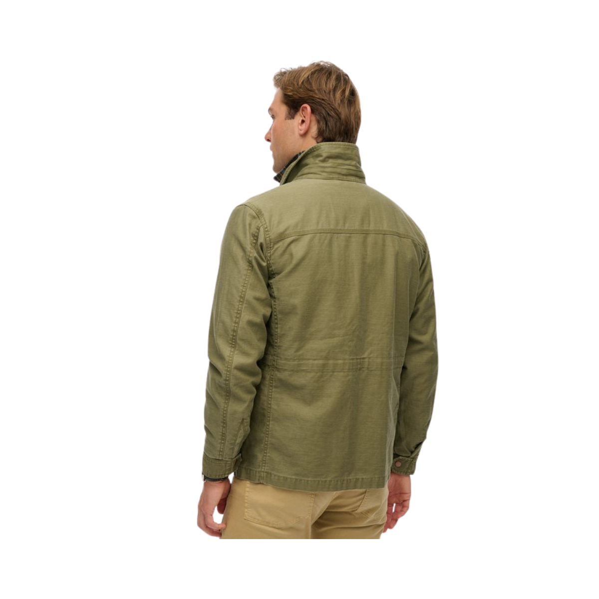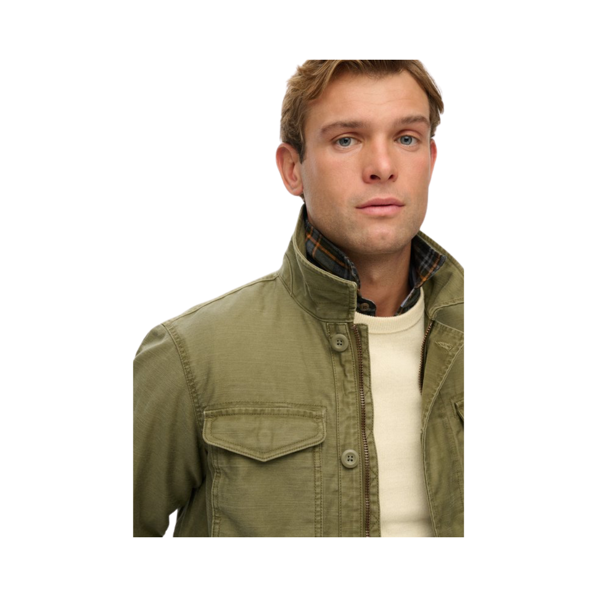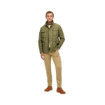 En militärinspirerad jacka med klassisk krage och robust design. Tillverkad i slitstarkt bomullstyg med flera funktionella fickor och dragkedja med knappslå, kombinerar den praktisk funktion med tidlös stil. En perfekt övergångsjacka för en avslappnat cool look.