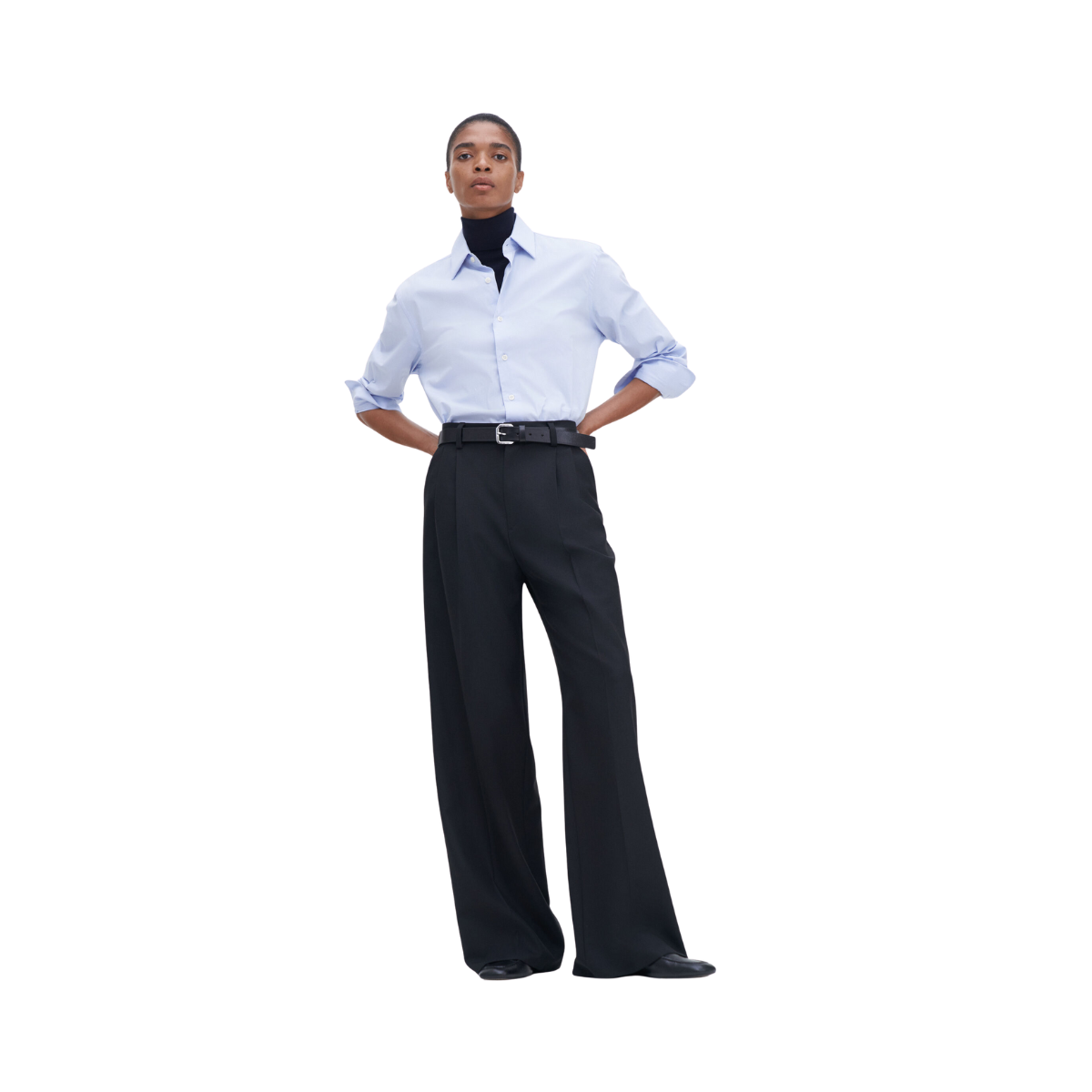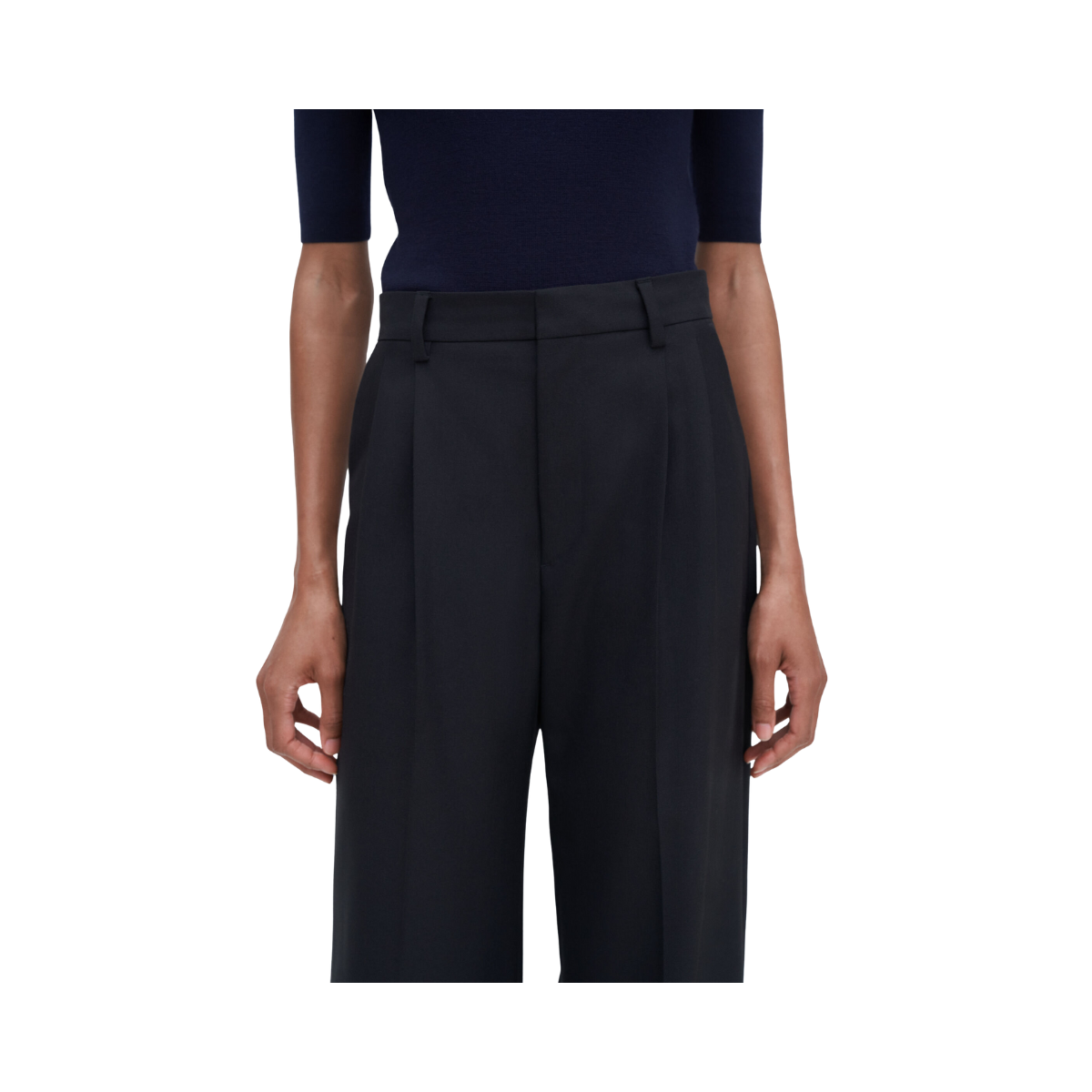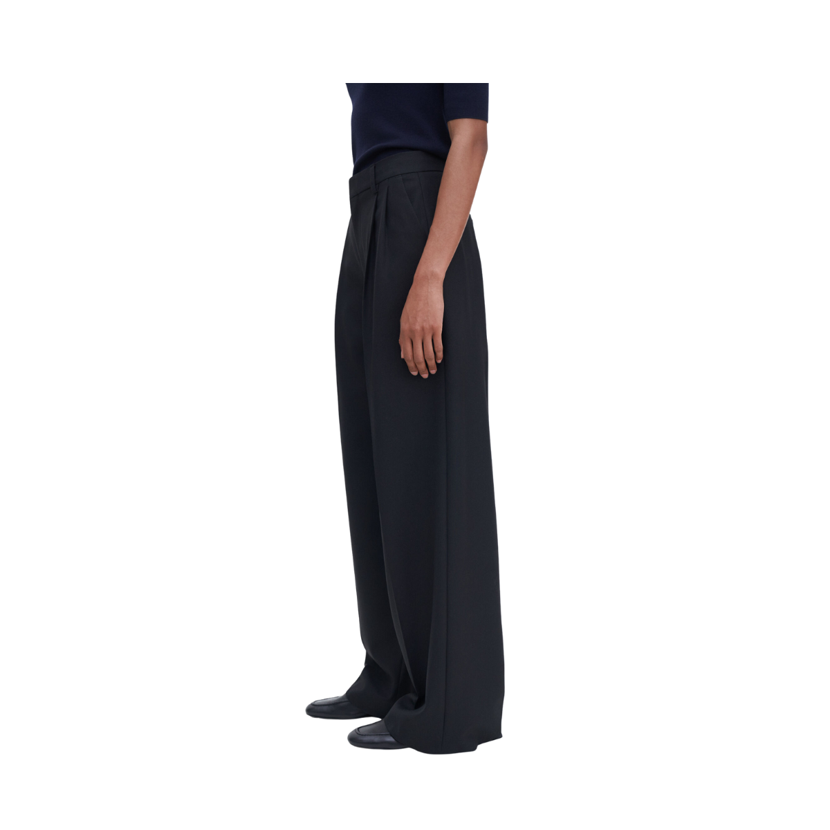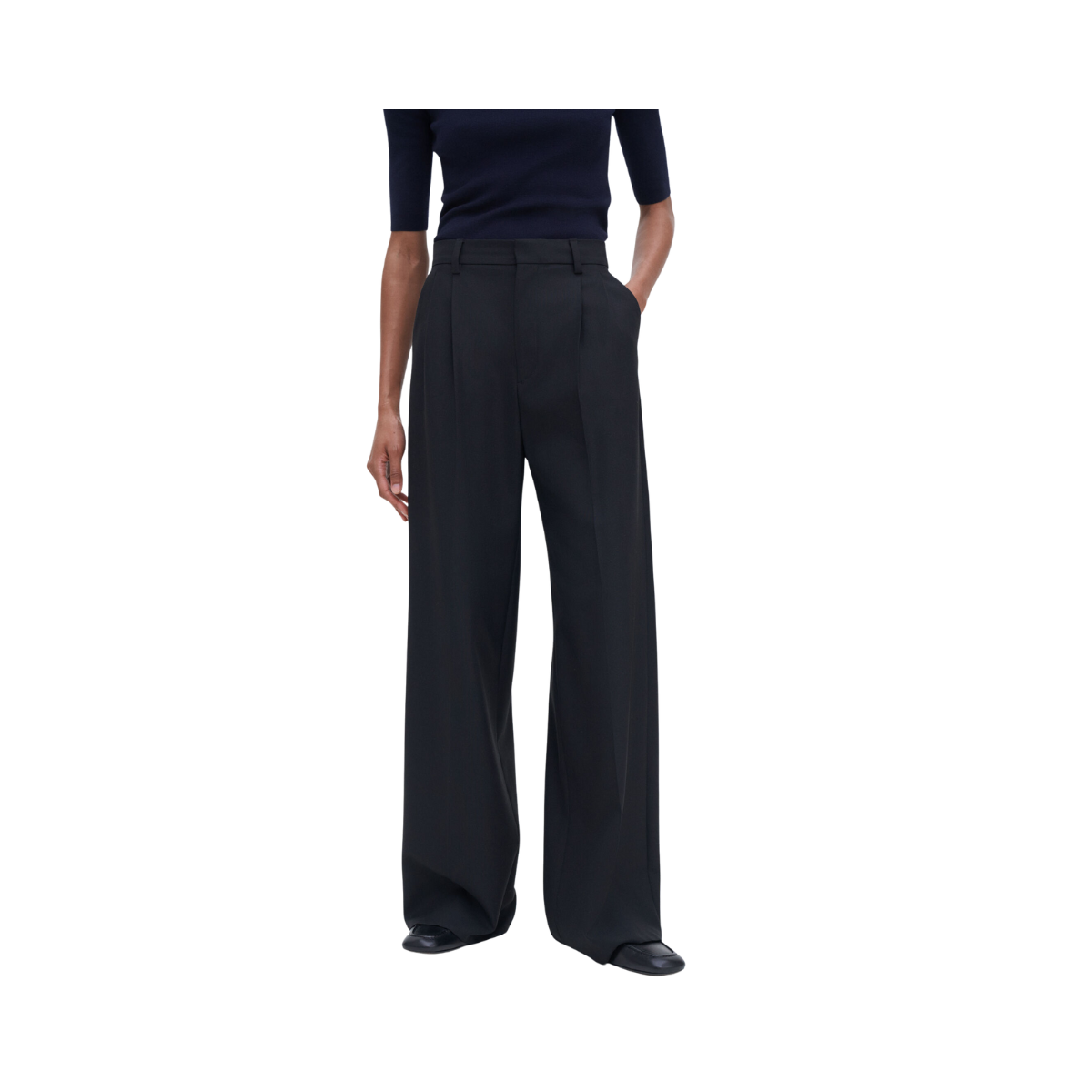 Ett par skräddarsydda byxor med hög, figurnära midja, voluminösa veck och vida ben i extra lång längd. Tillverkade i ullblandning för kostym. Kombinera med en blazer för en komplett kostymlook. Del av Filippa K:s Core Collection.