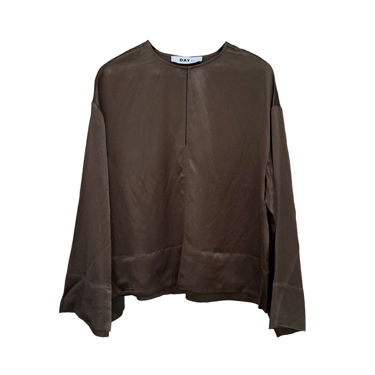 En elegant topp med lätt glansig finish som ger en sofistikerad look. Toppen har vida ärmar och en keyhole-öppning med knapp vid halsen som ger en stilfull detalj. Loose fit-passformen skapar en avslappnad och luftig silhuett, perfekt att bära både till vardag och festliga tillfällen.