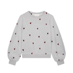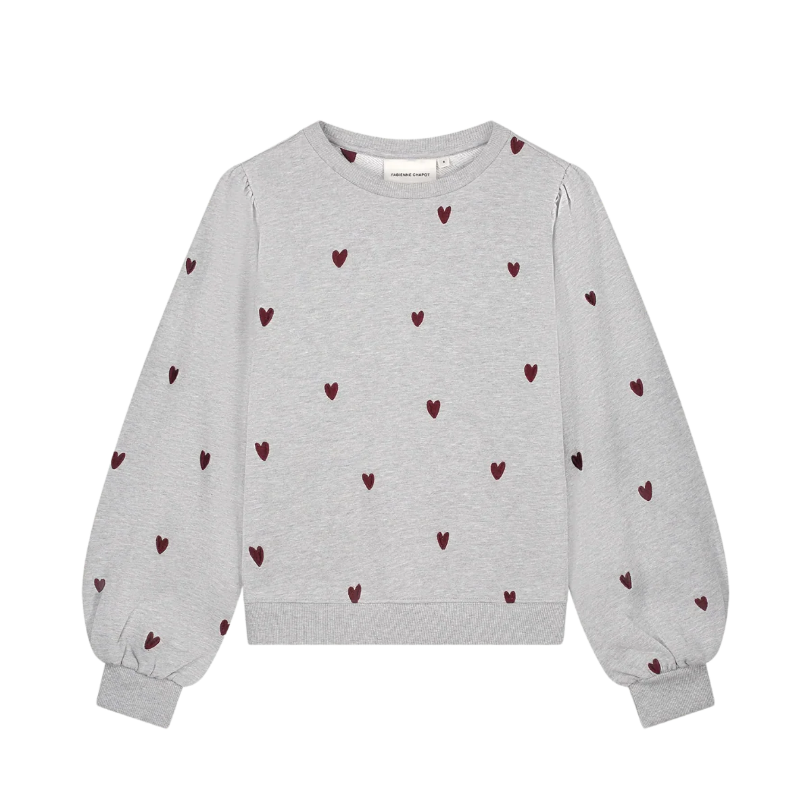 En grå tröja i ekologisk bomull med en bekväm regular fit. Rosa hjärtan pryder tröjan och gör den till en lekfull och glad detalj i din vardagsstil. Perfekt att matcha med jeans eller kjol för en avslappnad och trendig look.