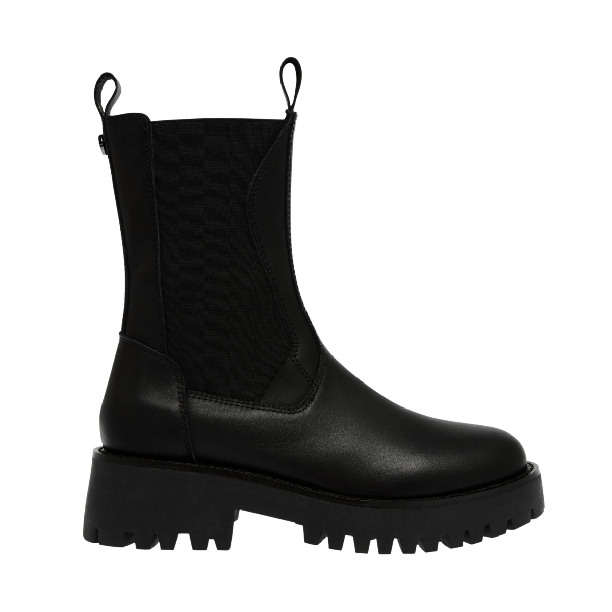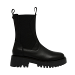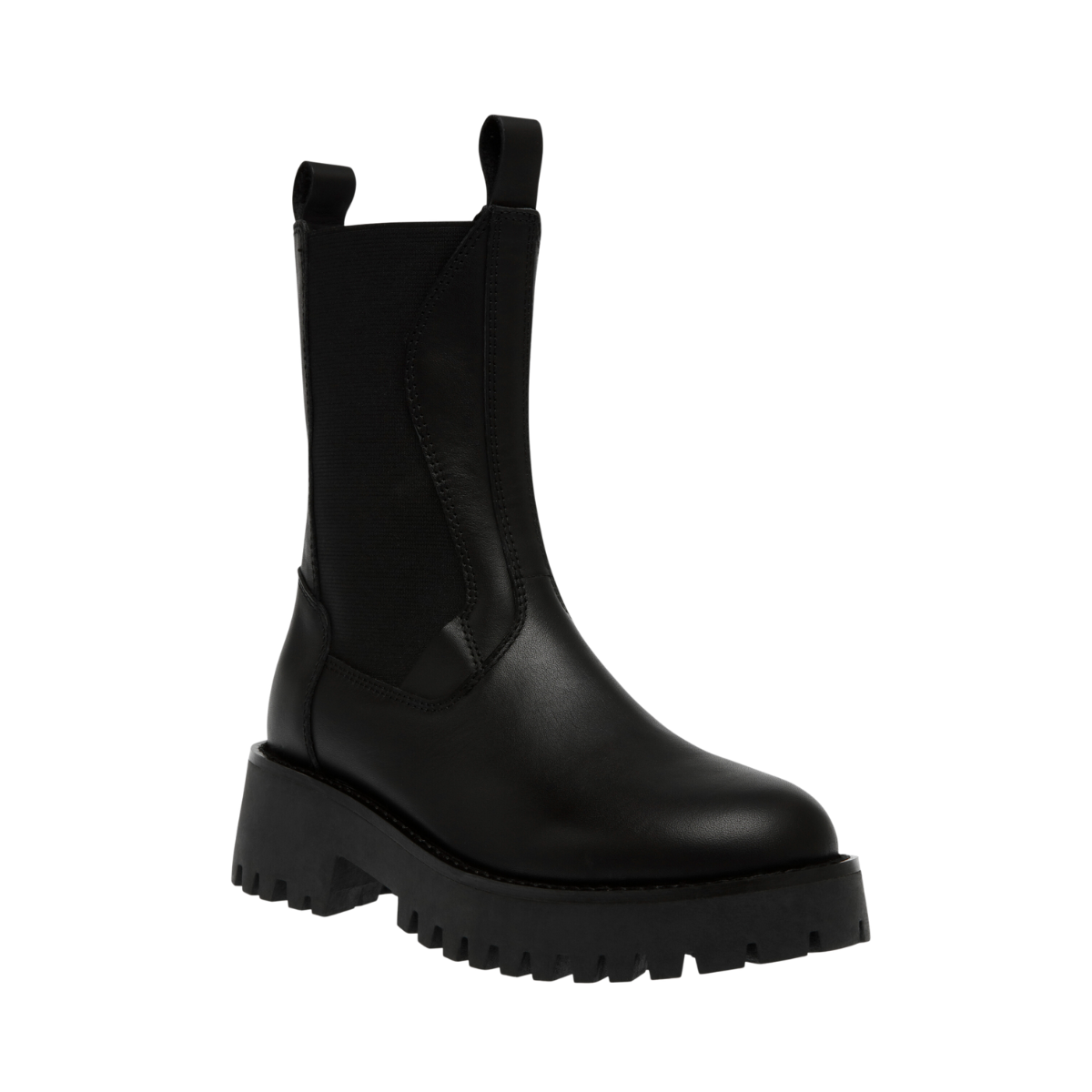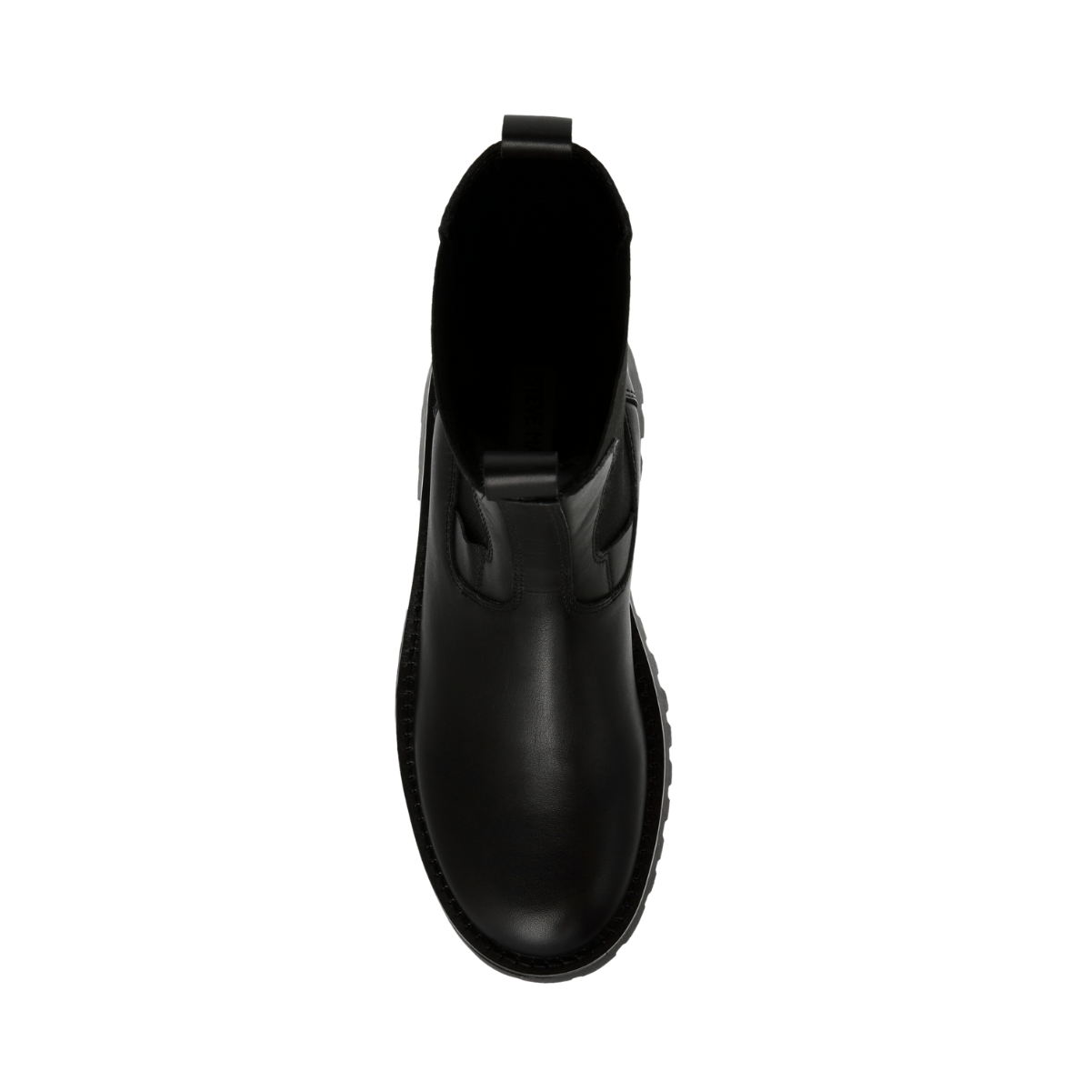 Styckpris / perSvart, Disclose Ankle boot från Steve Madden med en robust och modern design. Skon har en hög ankelhöjd och är gjord av slätt läder, vilket ger en stilren och minimalistisk look. Skon har en kraftig, räfflad sula som ger både höjd och ett bra grepp