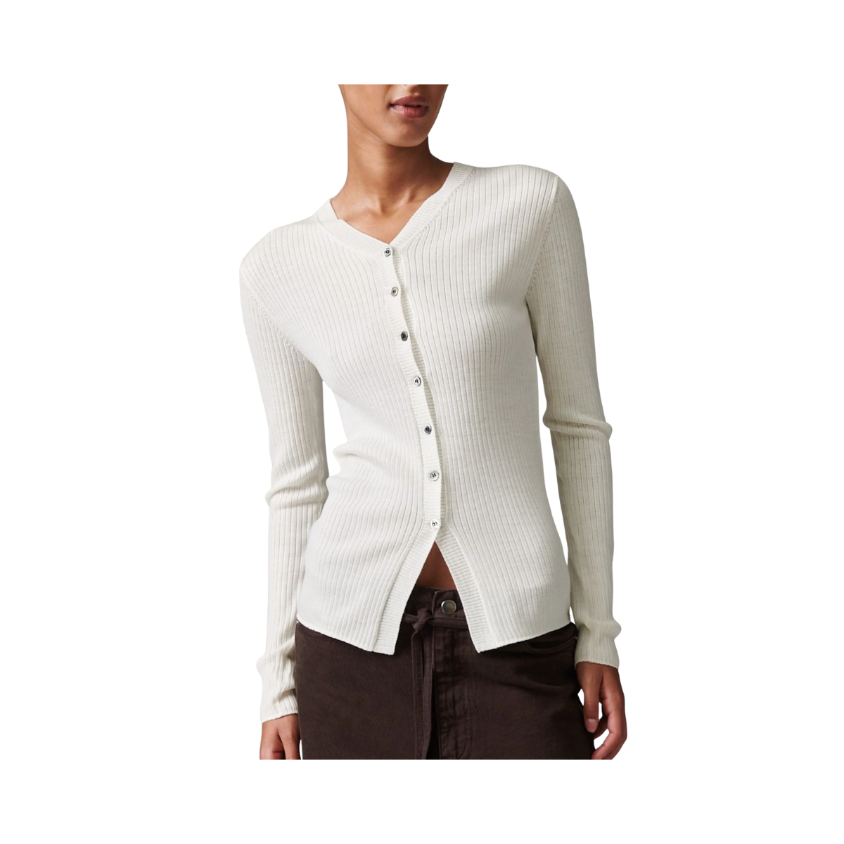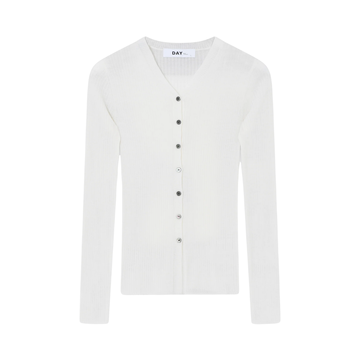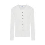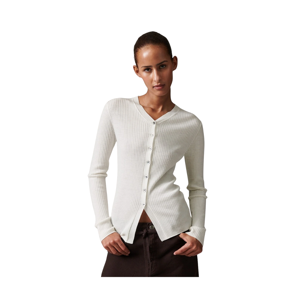 En långärmad, tunnstickad tröja med V-ringning och knäppning framtill. Den lätta kvaliteten gör den perfekt som ett elegant lager för både vardag och kontor.