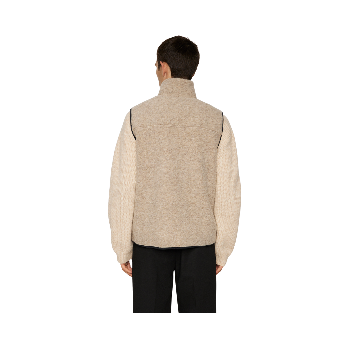En värmande och stilren väst i en mjuk ullfleeceblandning. Designad med hög krage, hel dragkedja och praktiska fickor, är den perfekt som isolerande mellanlager eller som ett lätt ytterplagg. En funktionell och modern favorit för lager på lager-look.