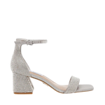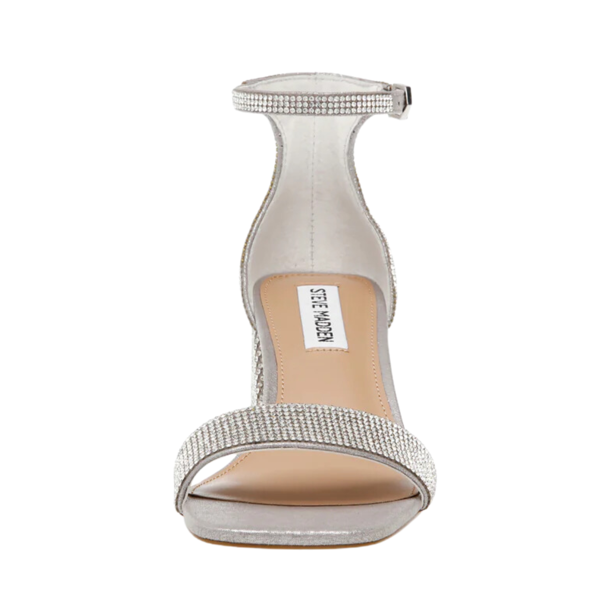Silver klackskor från Steve Madden. Denna tidlösa sandal har ett smalt band runt vristen , medan blockhälen skapar den perfekta balansen och referens retrolooken.