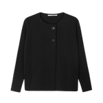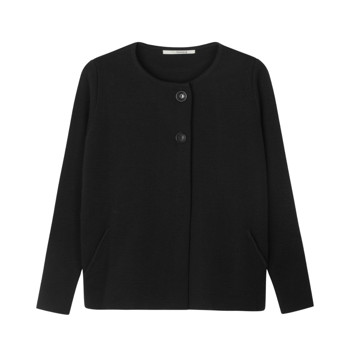 Styckpris / perSvart stickad kofta i en tätstickad ullmix med fin struktur. Rak passform med rund hals och diskreta fickor framtill. Knäpps med två konstrastfärgade knappar upptill.