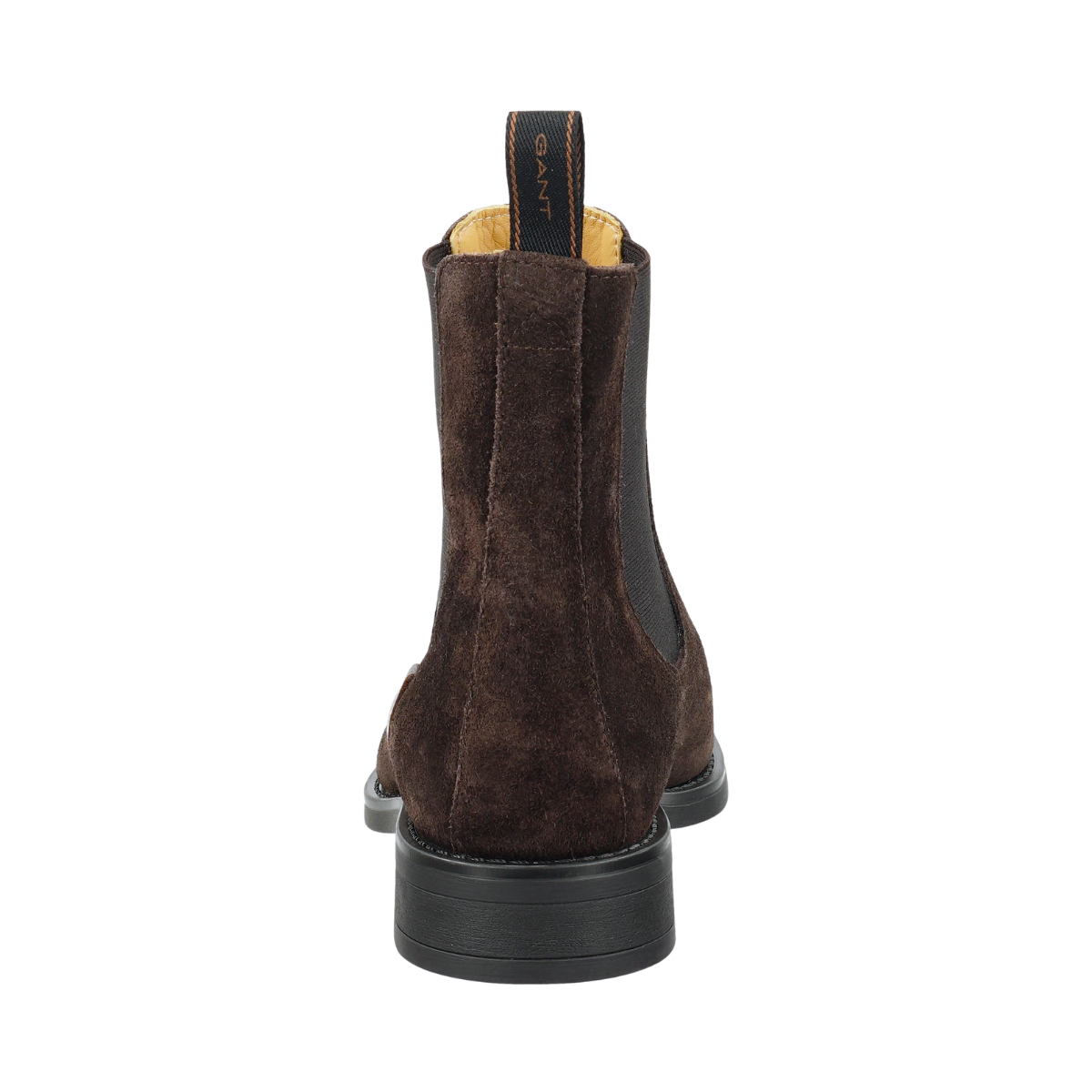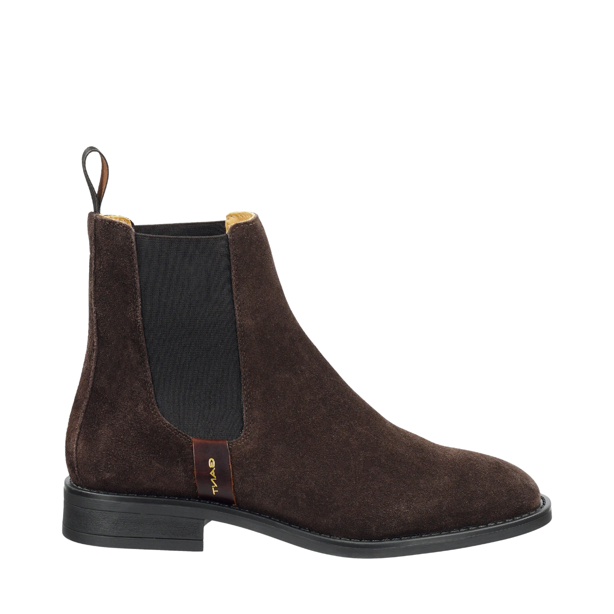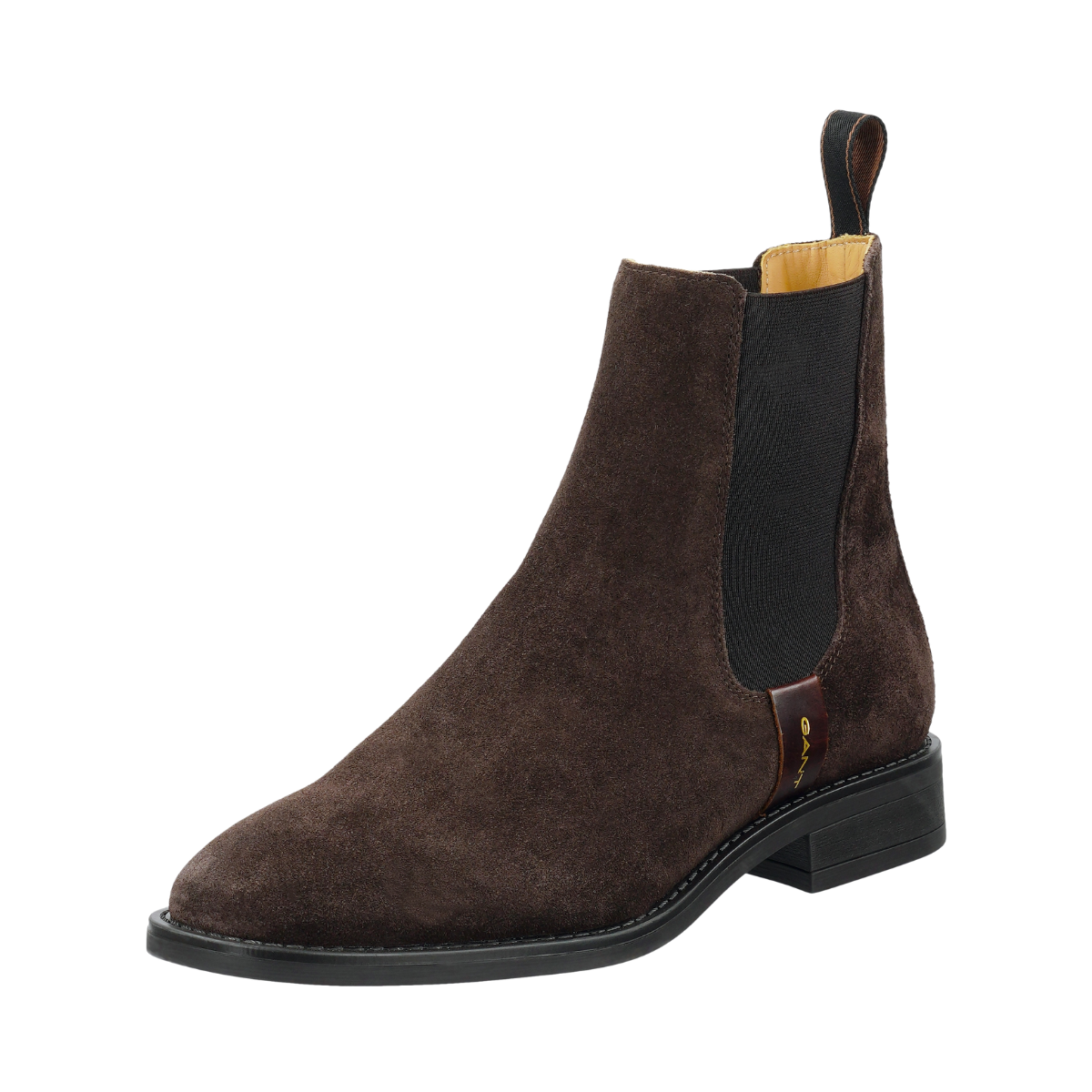En feminin chelseaboot med smal skaftvidd, elegant rundad tå och breda elastiska resårpartier. Tillverkad i högkvalitativt läder med mjukt textilfoder och läderklädd innersula för hög komfort.