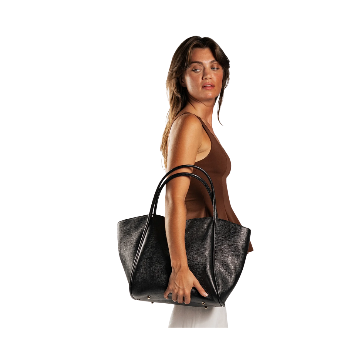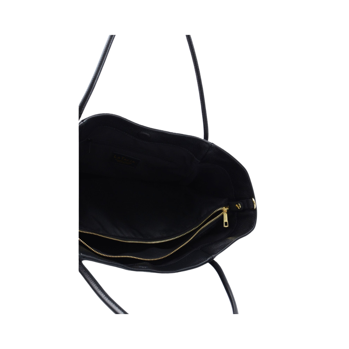 Rymlig väska som rymmer en stor laptop, med inre pouchette och mindre innerficka med dragkedja. Magnetknäppning, axelband runt väskan och lång axelrem gör den både säker och mångsidig för vardag och arbete.