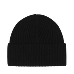 En ribbstickad mössa i en lyxig ull- och kashmirblandning. Modellen har bred uppvikt kant och en diskret påsydd logotyp framtill. Mjuk och varm för kyliga dagar.