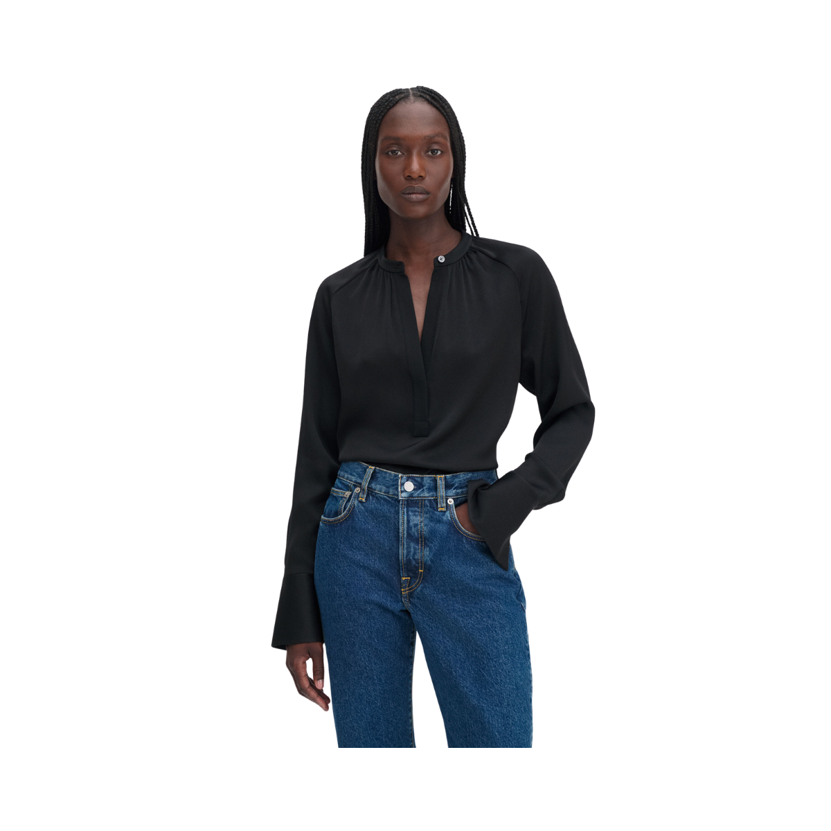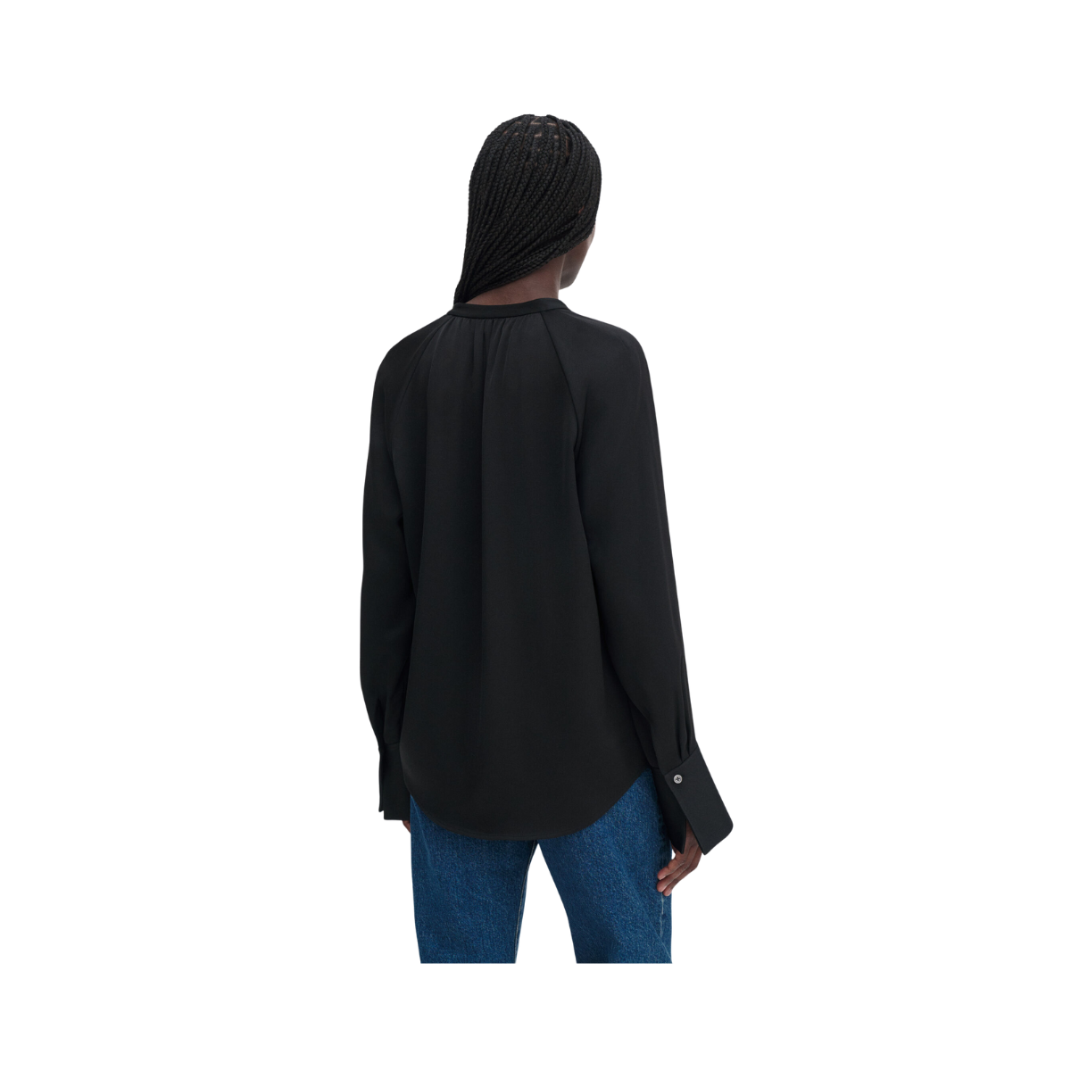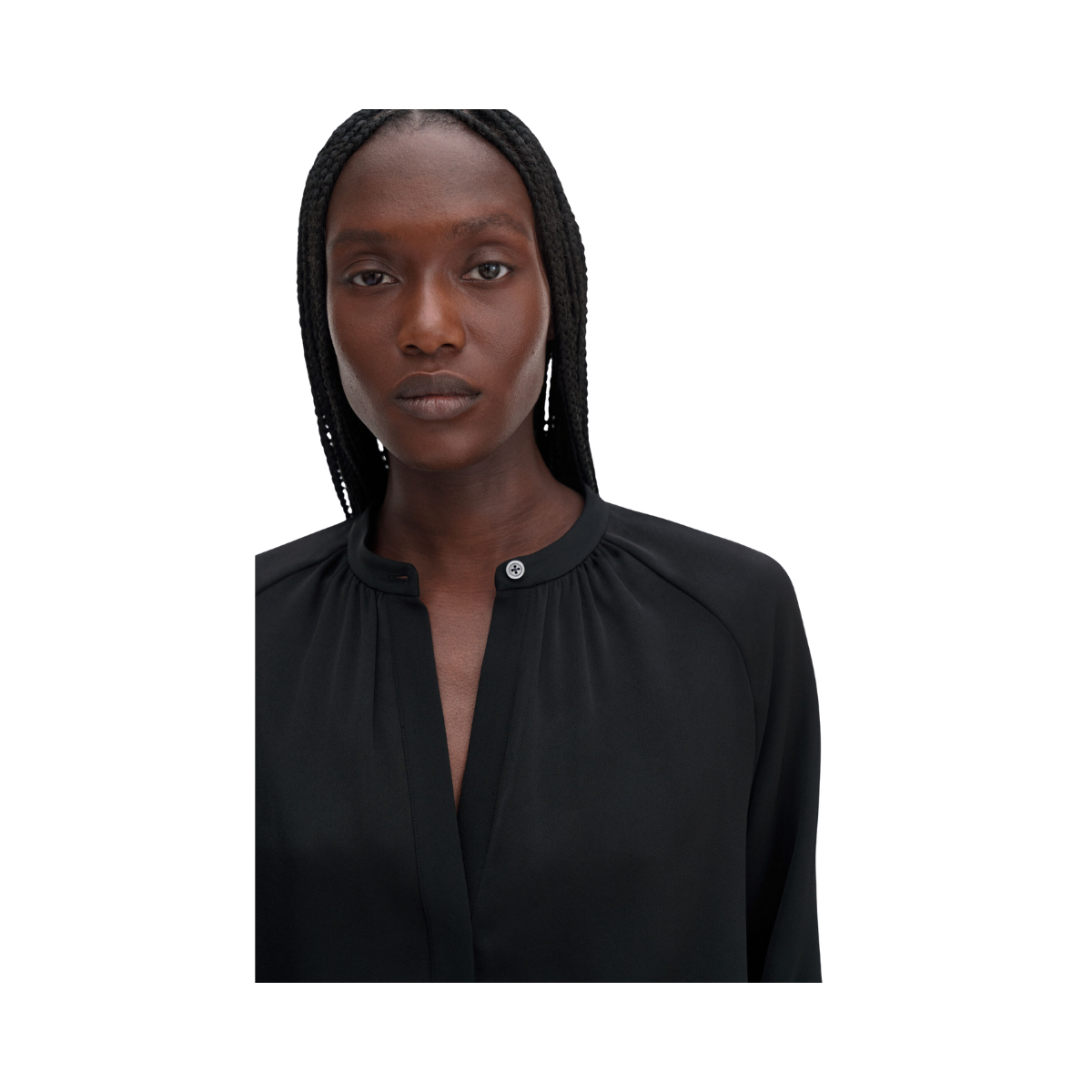 En blus med avslappnad passform tillverkad av en lätt och glansig draperad Naia™-acetatblandning. Designad med raglanärm och rynk vid ståkragen. Perfekt för att ge en uppklädd känsla till vilken outfit som helst.