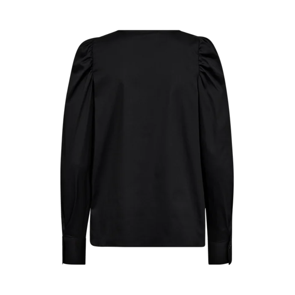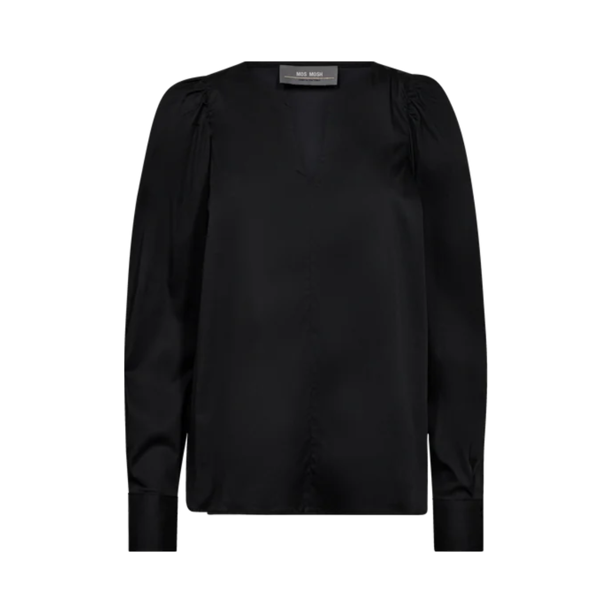 Styckpris / perSvart blus från Mos Mosh. Tillverkad i en vanlig siluett, designad med långa puffärmar, rundad fåll och delad halsringning. Kombinera den utan ansträngning med jeans för en chic kontorslook eller stoppa in den i en kjol för en snygg dejtkväll.