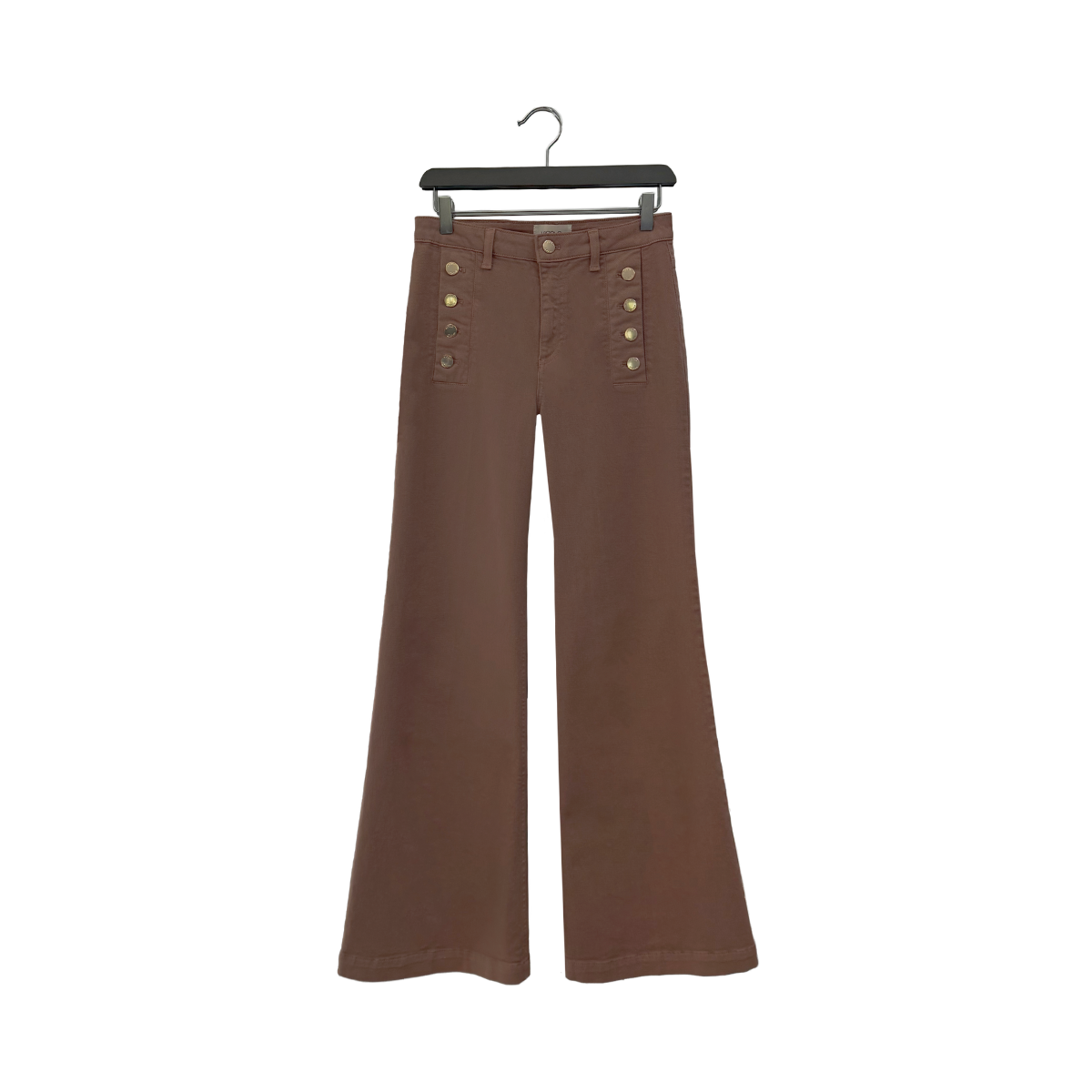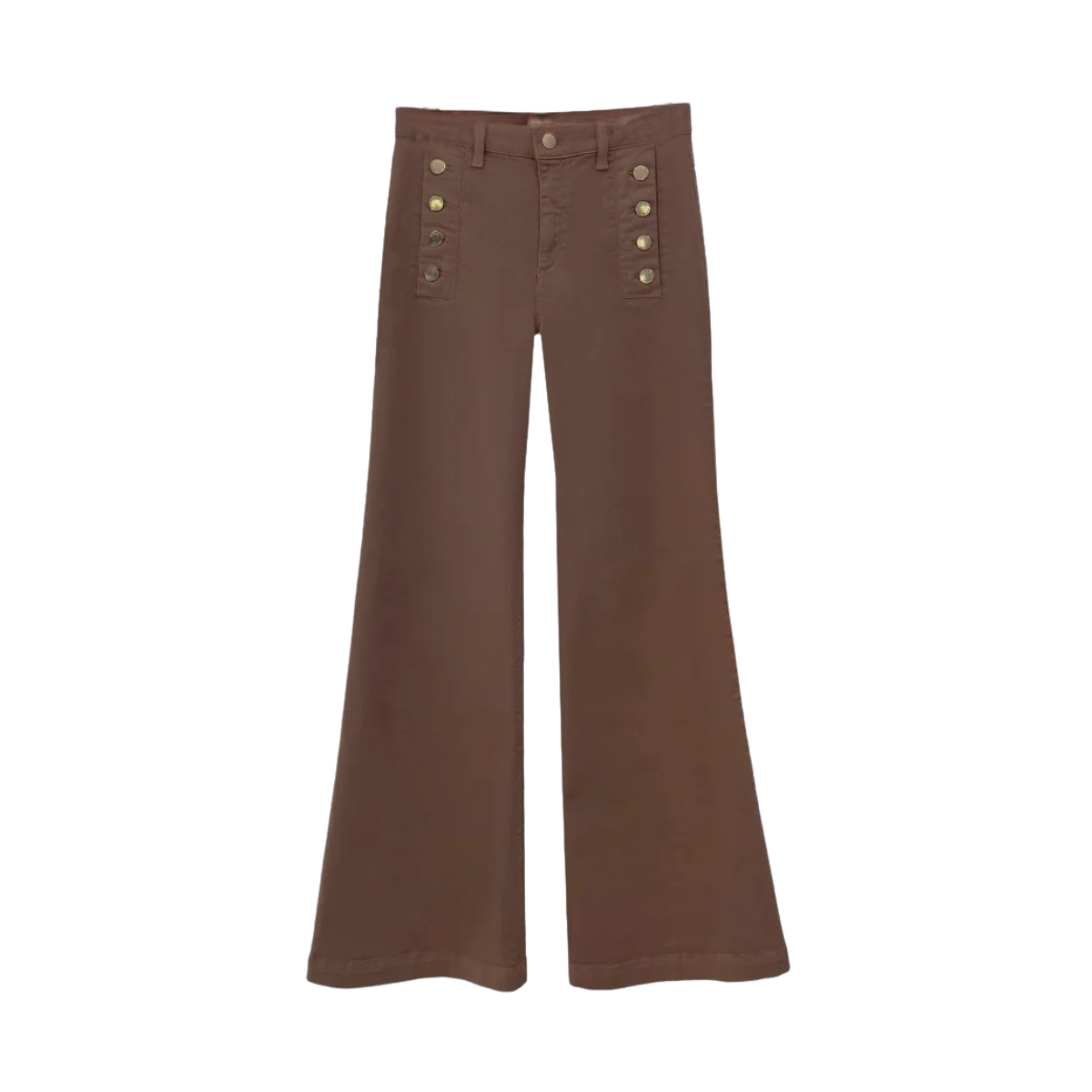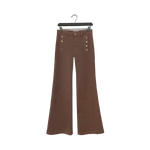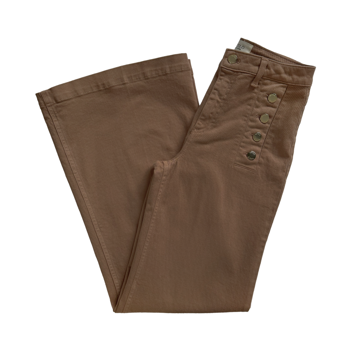 Jeans med hög midja och vida ben för en modern siluett. Framtill pryds de av dekorativa guldknappar som ger en elegant touch, medan gylf med dragkedja och knapp samt bakfickor adderar klassiska denimdetaljer. Ett stilfullt par som kombinerar komfort och sofistikerad design.
