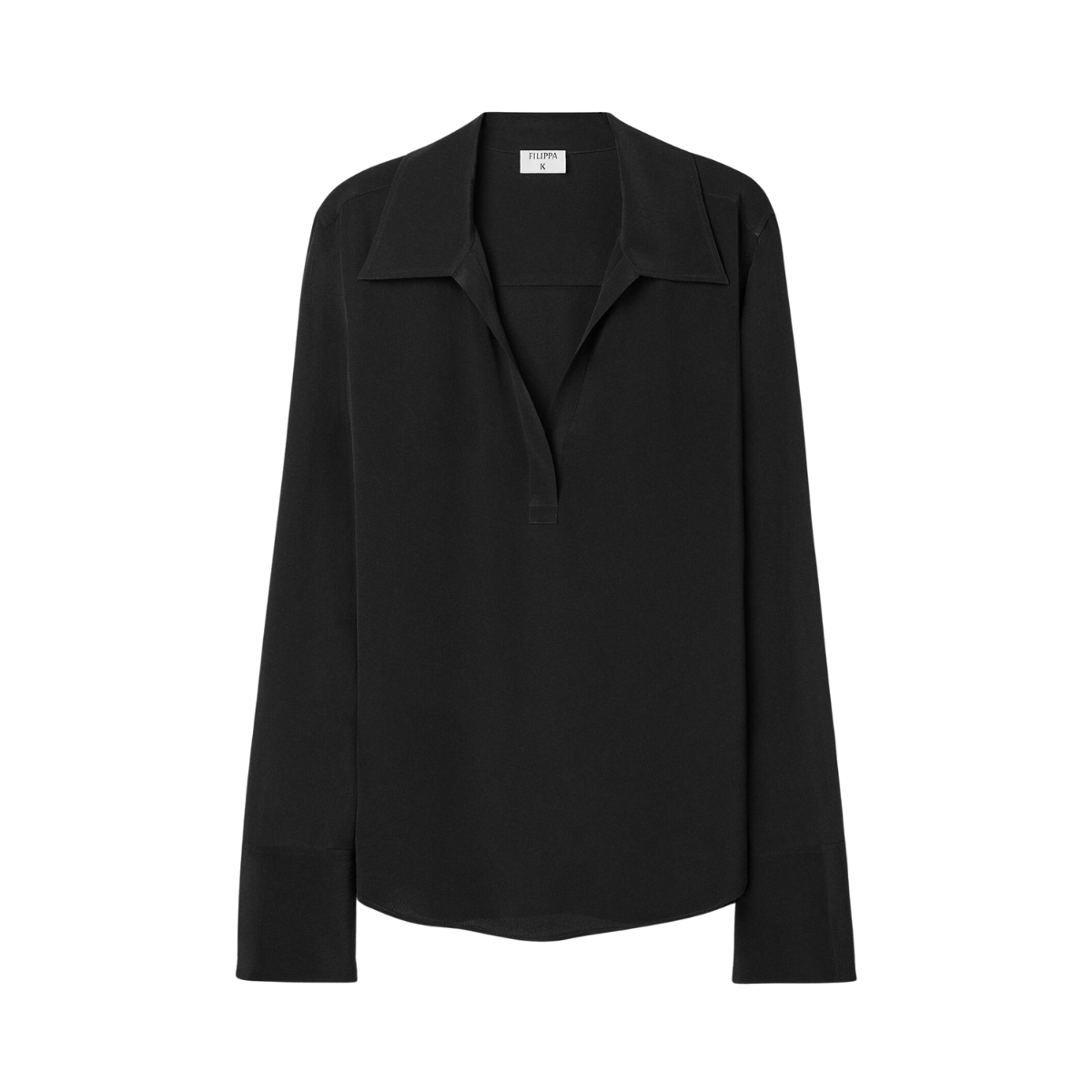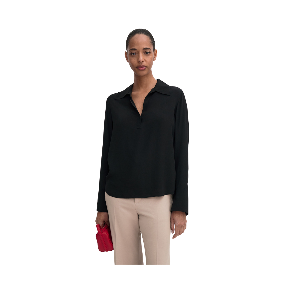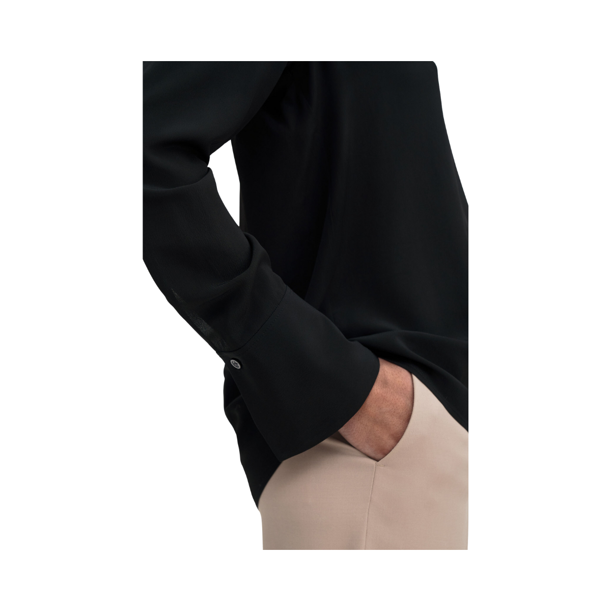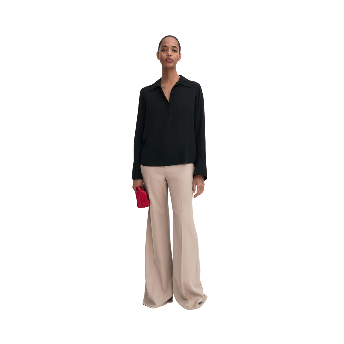 En blus med avslappnad passform draperad i en matt och lätt Naia™-acetatblandning. Stilren design med halv knappslå – perfekt att kombinera med skräddade byxor för en look som fungerar både på kontoret och till kvällen.