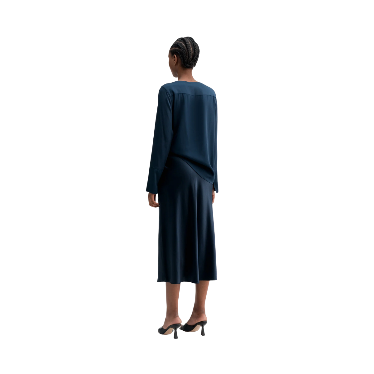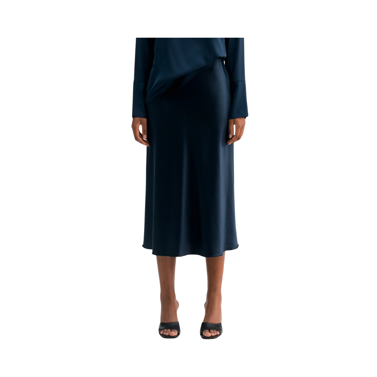 Ett av Ahlvar Gallerys signaturplagg, tillverkad i satin siden/stretch och skuren på snedden för en elegant fall. Den är designad för både stil och komfort och har en dubbel lager elastisk midja för perfekt passform. Kombinera med en tung stickad tröja eller en oversized t-shirt för vardagslooken, eller med en sidenblus för festligare tillfällen.