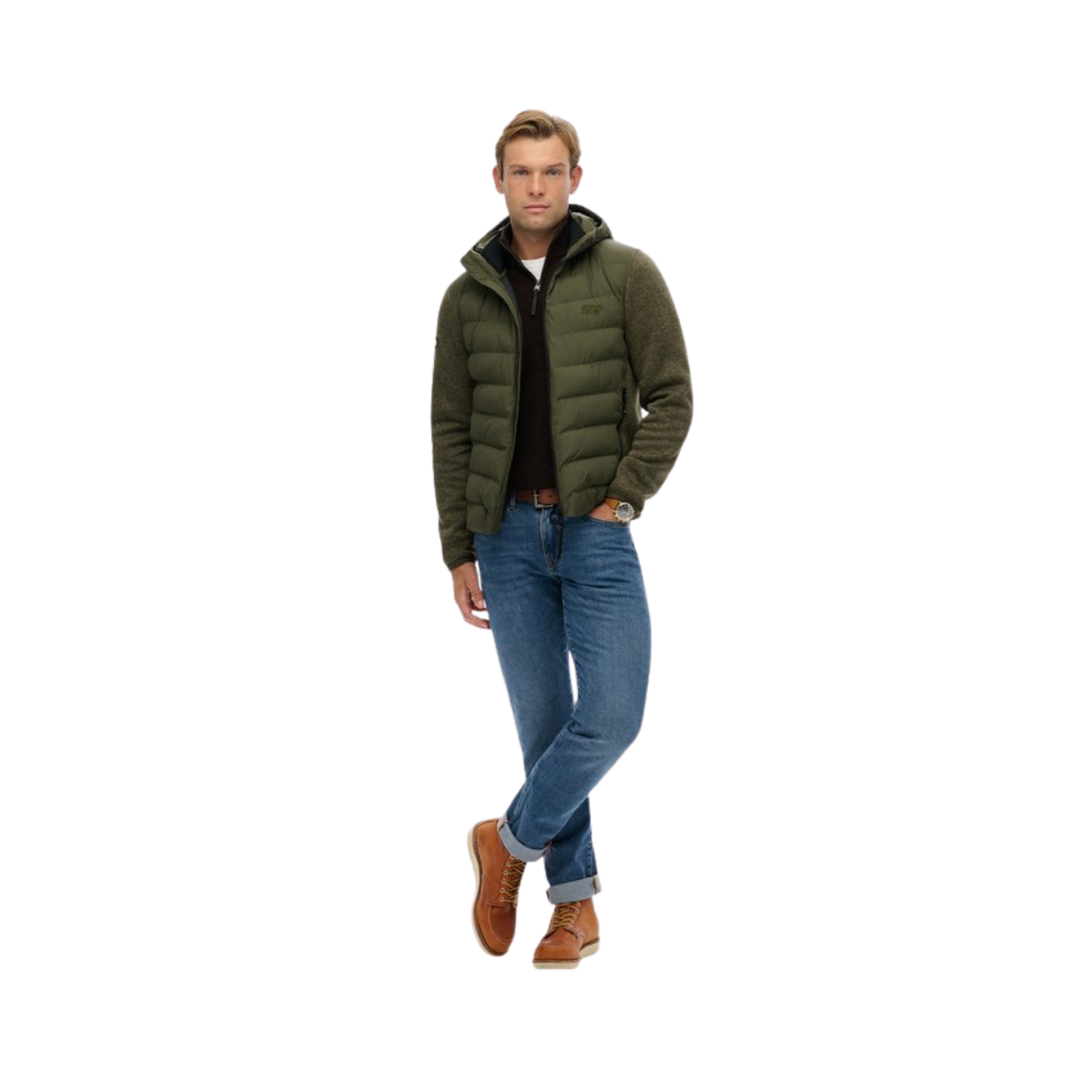 Hooded Storm Knit Hybrid Jacket - B9X Khaki Green Marl