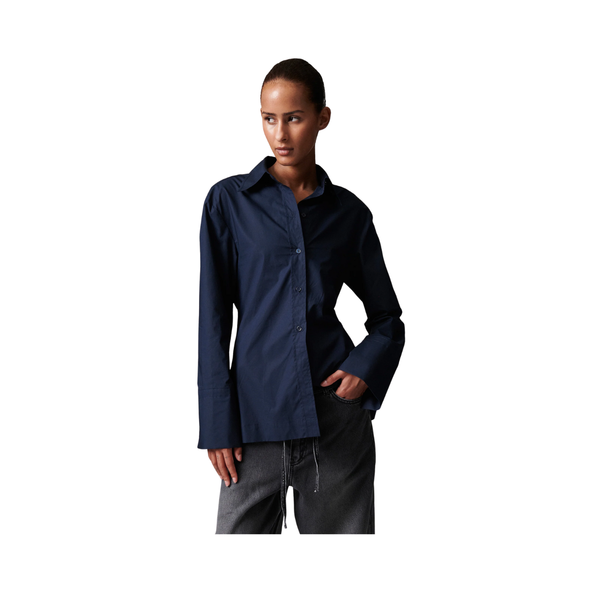 En stilren och krispig skjorta i bomull med knappar vid ärmsluten för en klassisk detalj. Skjortan har en slim fit som ger en figurnära och elegant silhuett, perfekt för både vardag och mer uppklädda tillfällen.