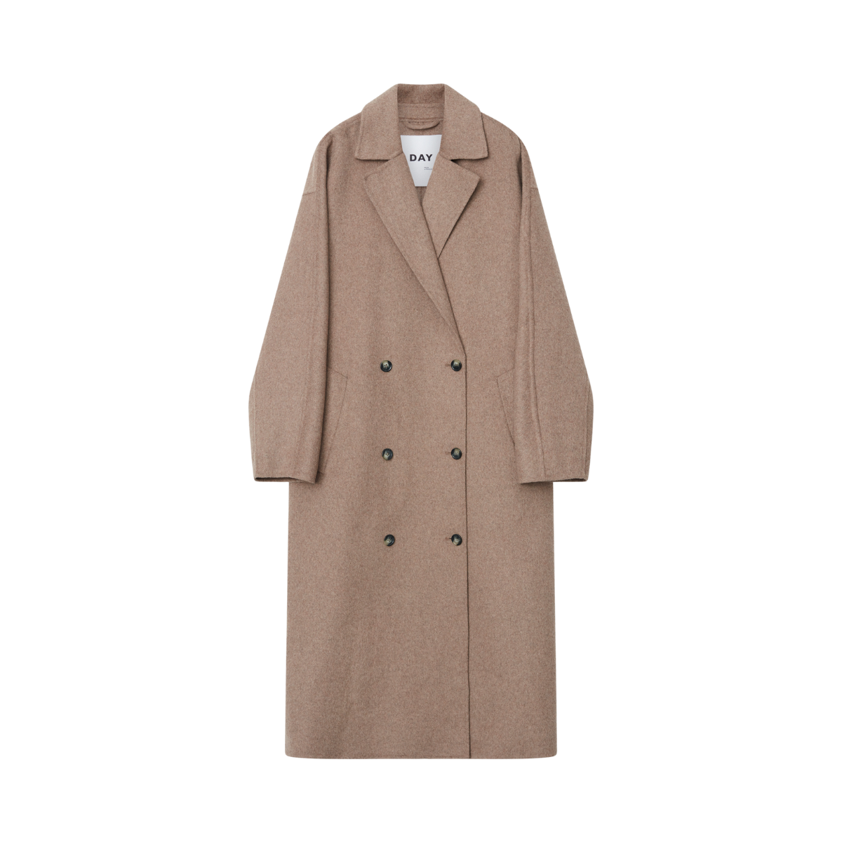 Styckpris / perBrun stilren kappa från DAY. Kappan har en avslappnad passform för en trendig siluett med möjlighet att bära lager under. Den har en dubbelknäppt design med markerade slag. Kappan har nedhasade axlar och praktiska sidfickor. I midjan har kappan ett knytband som framhäver siluetten och ger möjlighet för justerbar passform.