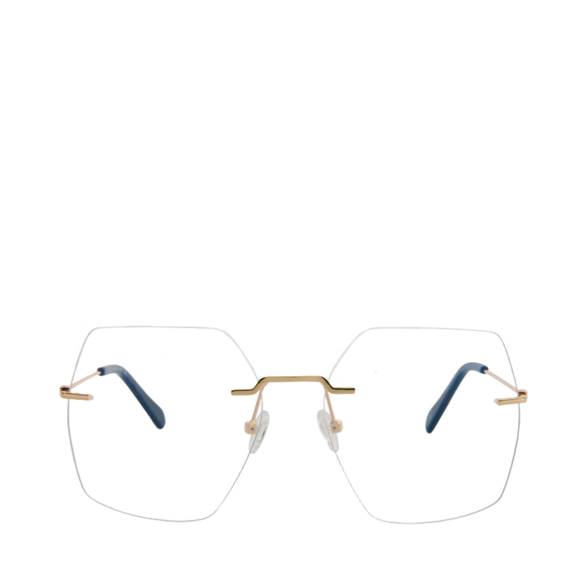 Jennifer är en elegant båge i guld med stora fyrkantiga glas som ger ett modernt och stilfullt uttryck. Den randlösa designen skapar en lätt och luftig känsla som passar perfekt för kvinnor som vill ha en sofistikerad look.