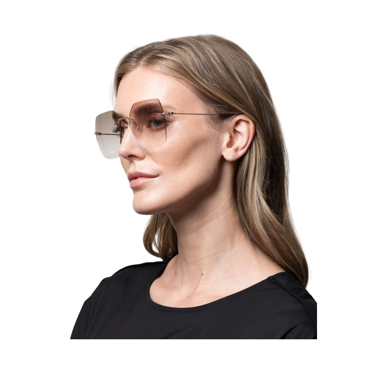 Jennifer är hexagonala glasögon i guld med en modern och minimalistisk design. Den tunna metallbågen och det randlösa utförandet ger ett elegant och luftigt uttryck som passar perfekt för kvinnor som vill ha stil utan att överdriva.