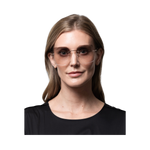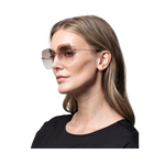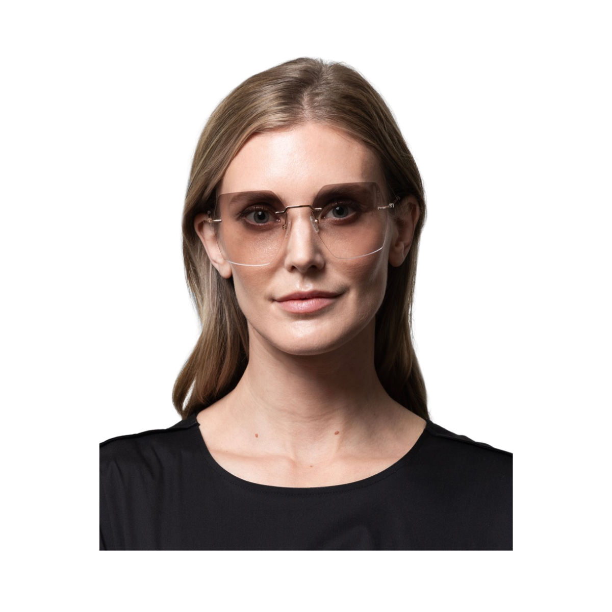 Jennifer är hexagonala glasögon i guld med en modern och minimalistisk design. Den tunna metallbågen och det randlösa utförandet ger ett elegant och luftigt uttryck som passar perfekt för kvinnor som vill ha stil utan att överdriva.