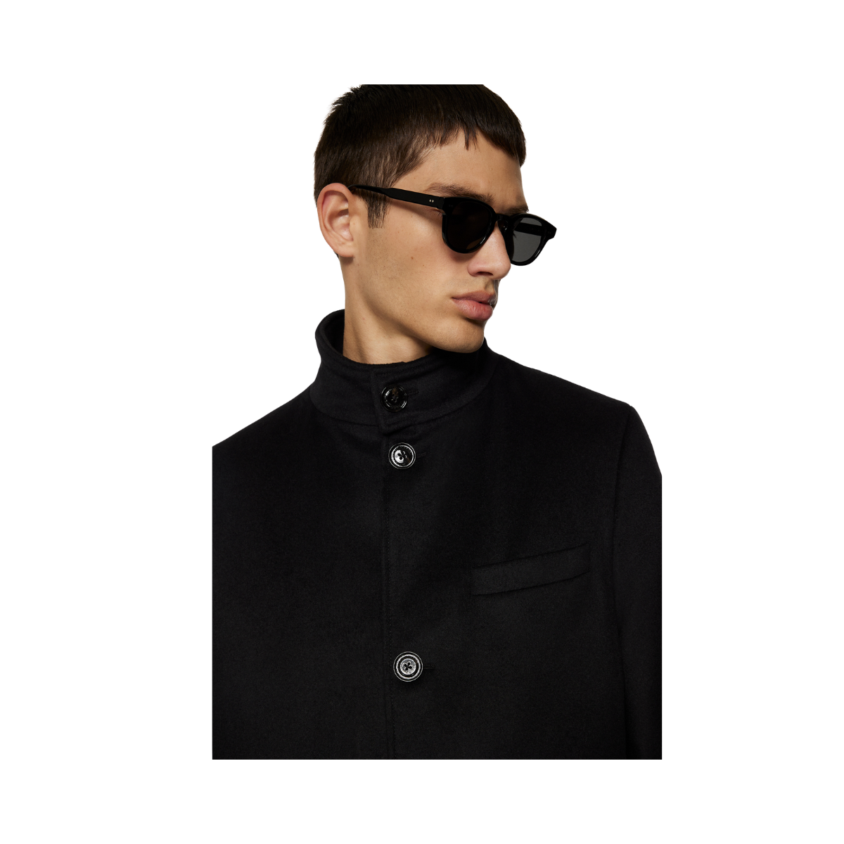 En stilren och tidlös kappa i en lyxig blandning av ull och kashmir. Denna kappa kombinerar funktion och elegans med sin raka passform, ståkrage och knappslå framtill. De två sidofickorna och de två innerfickorna ger både praktisk förvaring och en ren design. Ofodrad för en lättare känsla, vilket gör den idealisk för lager-på-lager-styling under övergångsperioder eller som yttersta lager på kallare dagar.