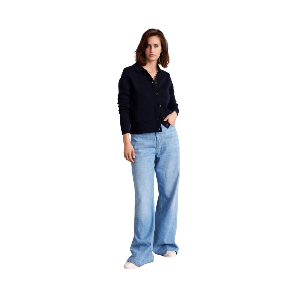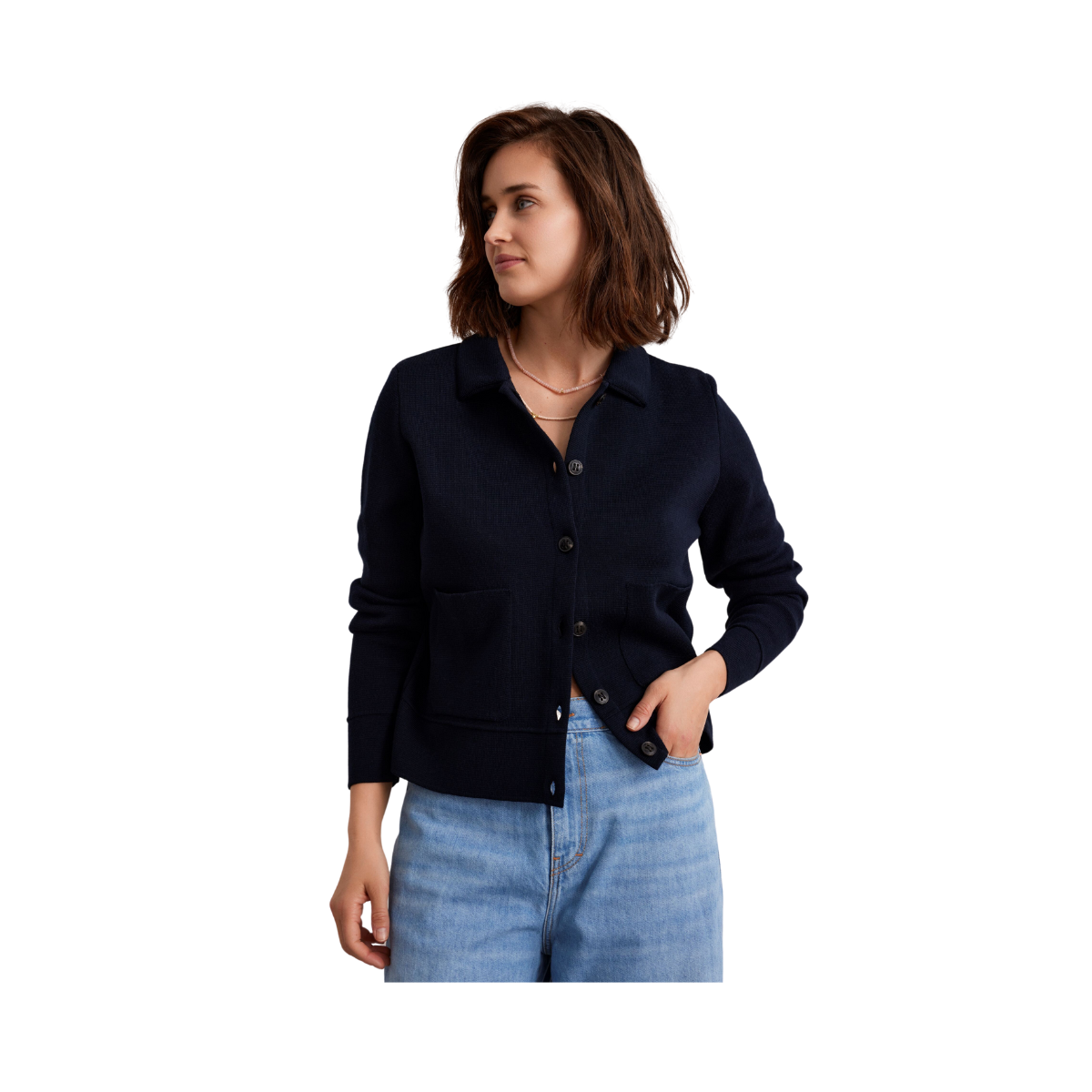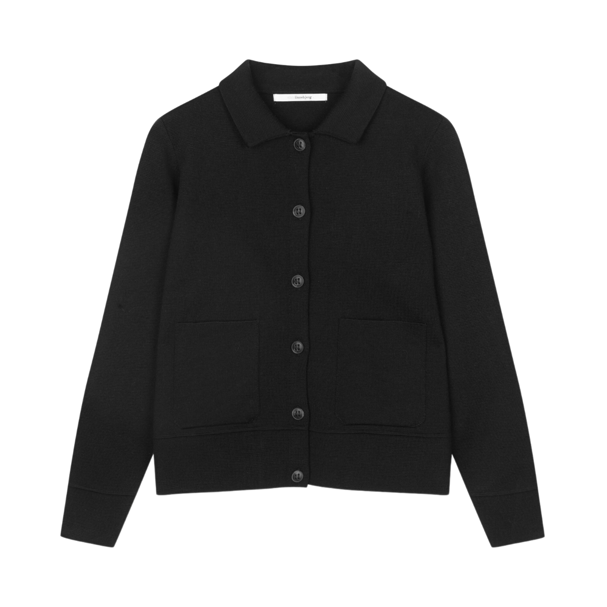 Styckpris / perSvart stilren kofta från Sibin Linnebjerg. Koftan har knappstängning framtill och har två praktiska fickor. Den har en skjortkrage som ger koftan en strukturerad och elegant look.