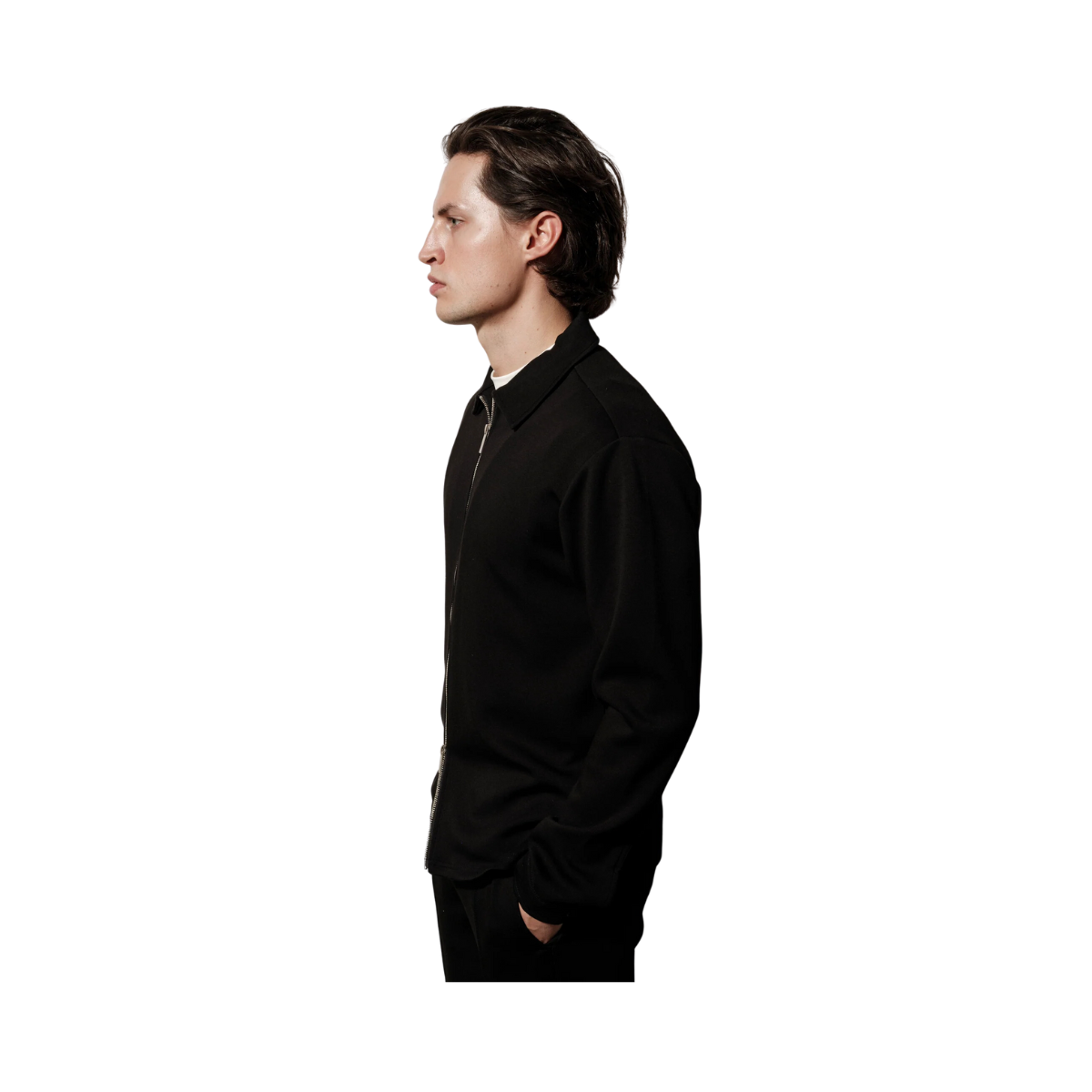 Svart zip-skjorta från Brand Island i regular fit, tillverkad med superstretch för en flexibel och bekväm passform. Designad med långärmade ärmar, slagkrage och tvåvägsdragkedja för en modern och funktionell stil.