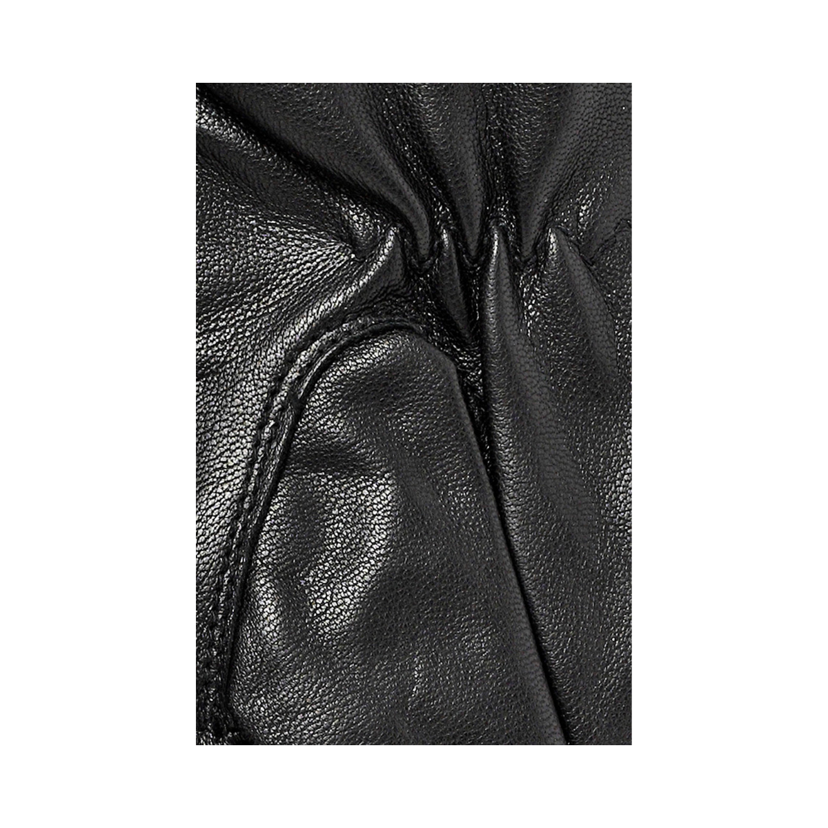 Elegant handske i svart getskinn med mjukt polärt fleecefoder, tillverkad i exklusiv fullnarv getnappa med vacker glans. Den tighta passformen med elastisk mudd och diskret slits ger optimal komfort, medan subtila pikésömmar skapar en sofistikerad look. En tidlös accessoar för både vardag och speciella tillfällen.