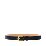 Styckpris / perSmalt bälte i äkta italienskt nappaläder med ett guld-färgat metallspänne för en sofistikerad look. Med en bredd på 2,8 cm passar det perfekt till både byxor och klänningar. Ett tidlöst tillbehör för alla tillfällen.