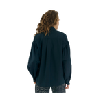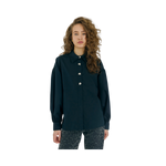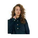 En strukturerad skjorta med modern volym och rena detaljer. Den har hög krage, knappslå framtill och rynkade ärmar, med en lätt boxig passform som gör den perfekt både för kontoret och uppklädda vardagslooks. Tillverkad i polyester och bomull med voluminösa ärmar.