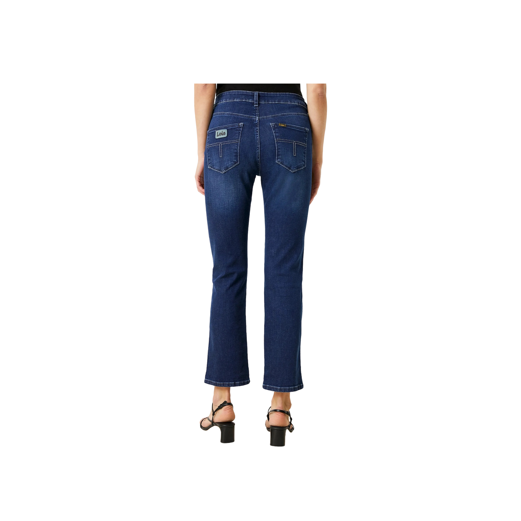 Styckpris / perMörkblåa jeans från Lois tillverkade i en bomullsblandning. De är högmidjade, slim fit och croppade.