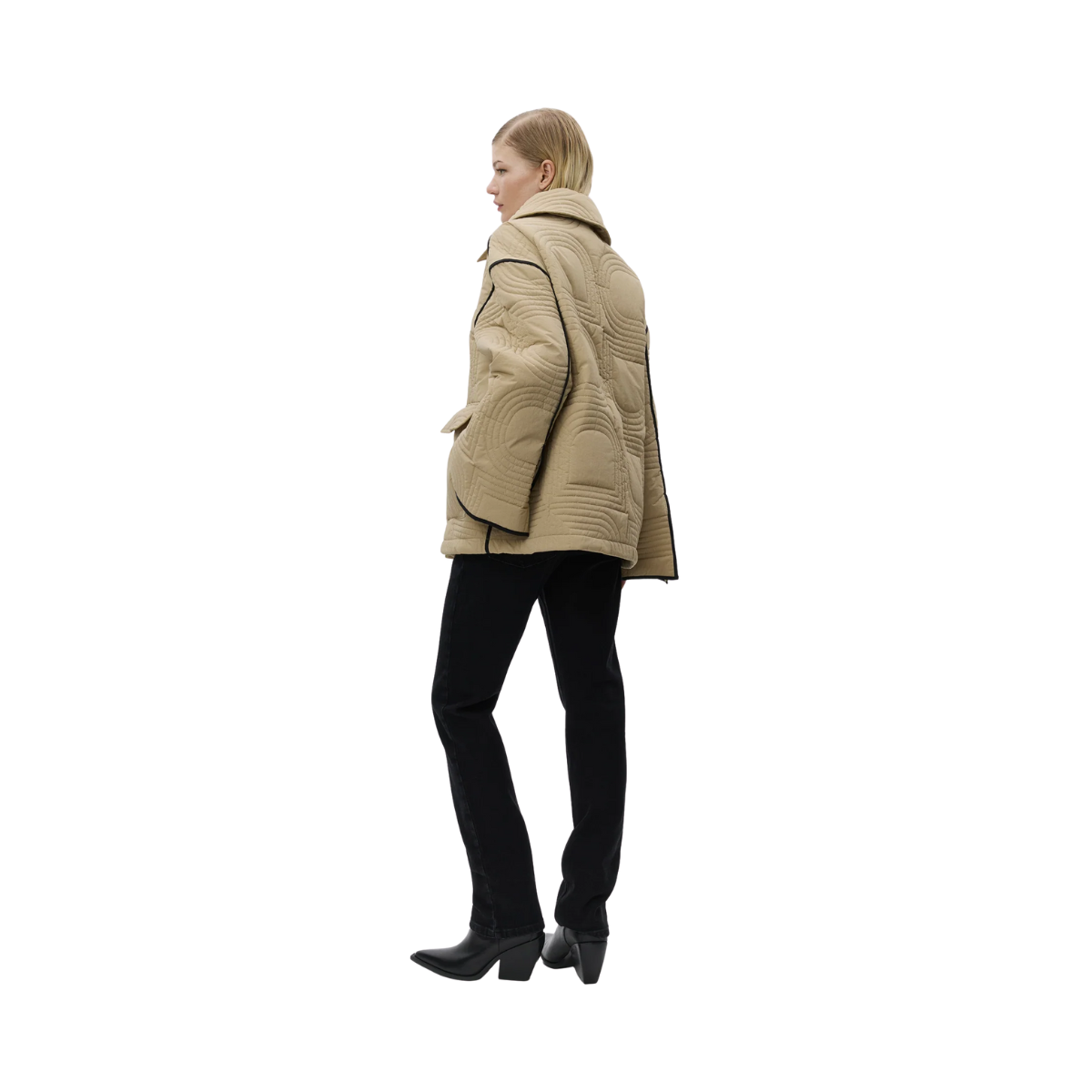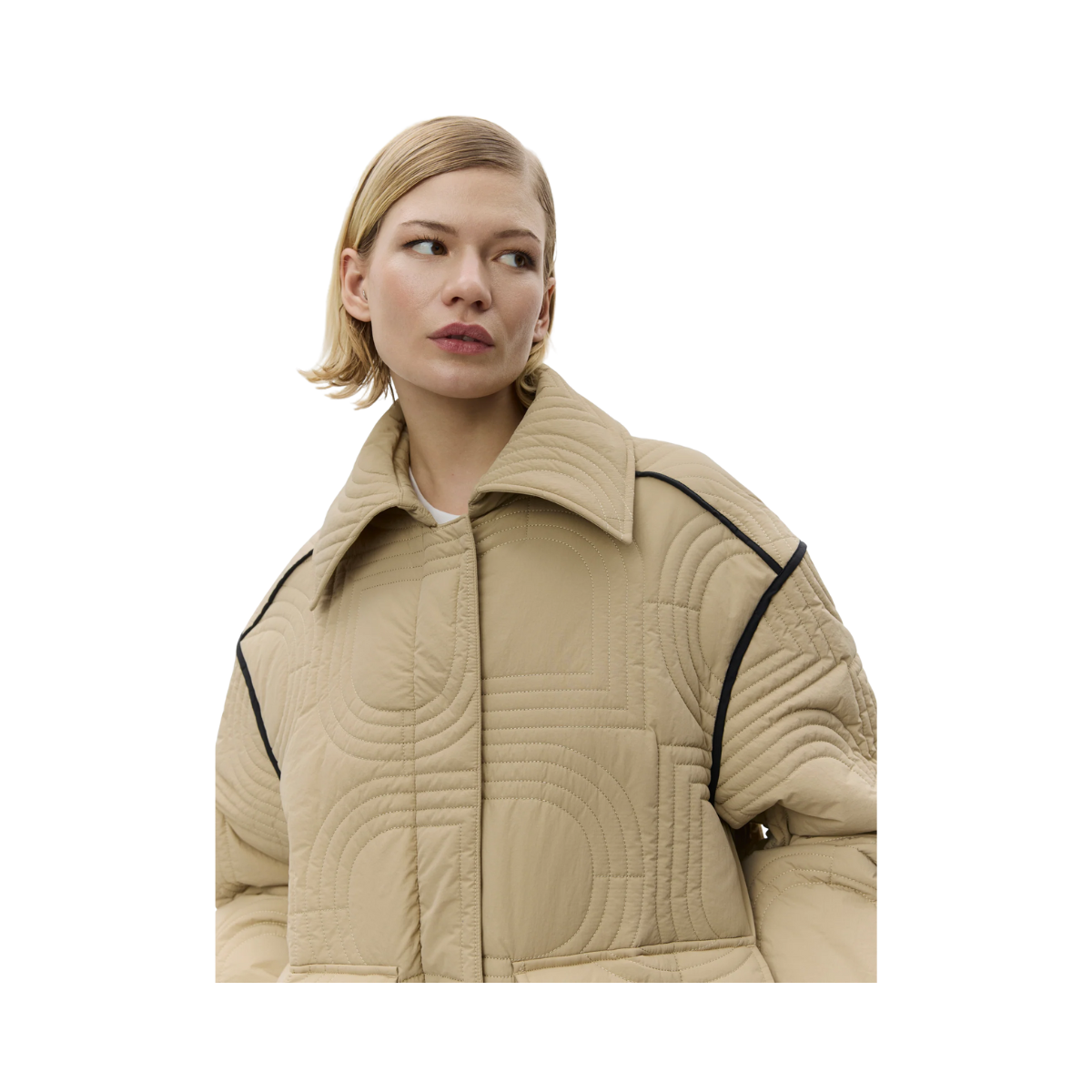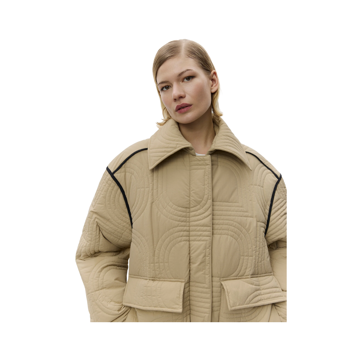 Denna quiltade kappa har tryckknappar framtill och två framfickor med ficklock. Ärmsluten är försedda med slitsar för rörelsefrihet. Modellen har en oversized passform för en avslappnad och modern siluett. Perfekt för lager-på-lager under kyliga dagar.
