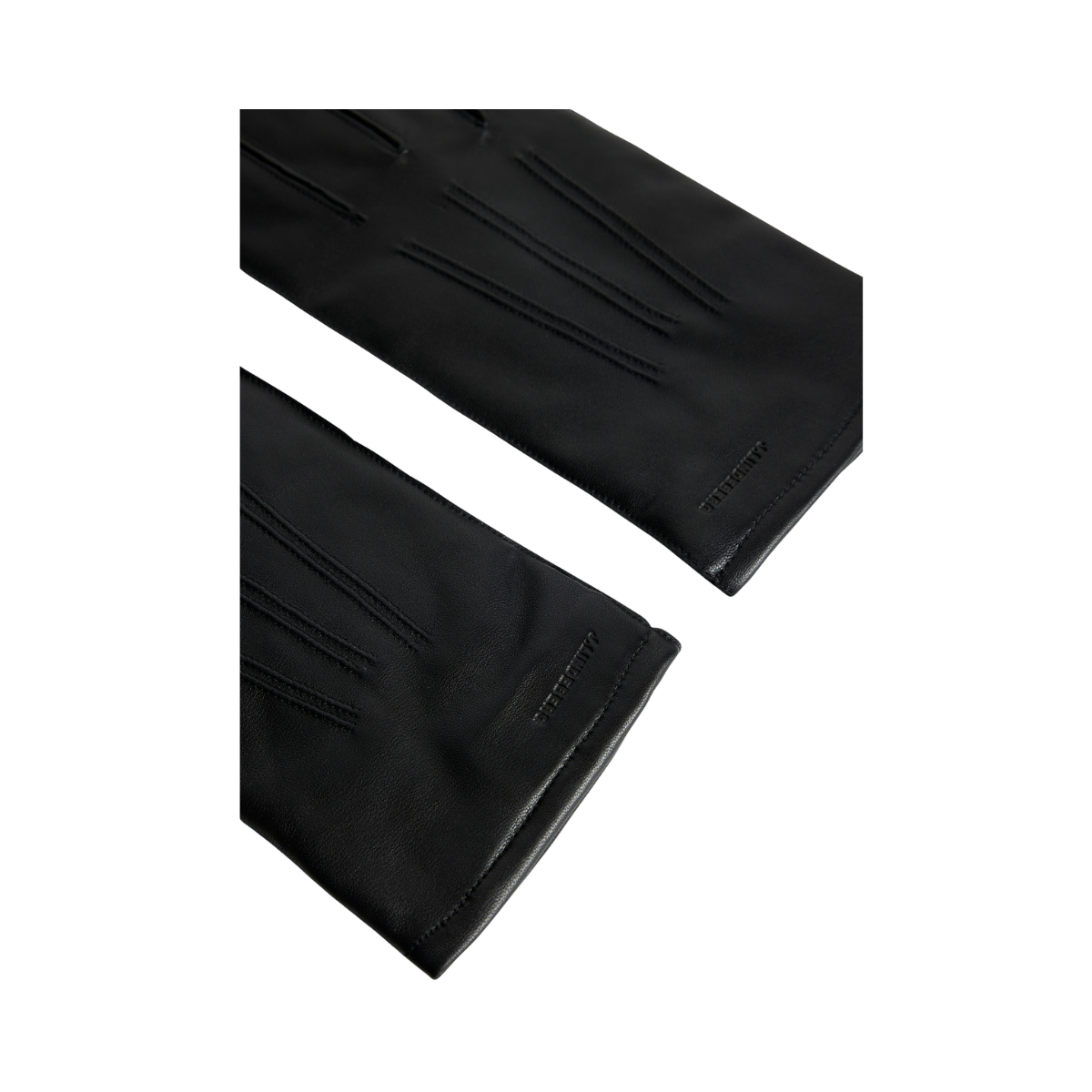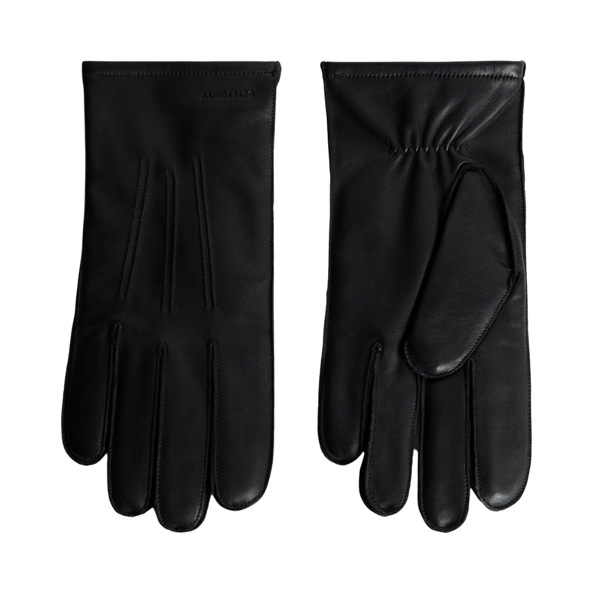 En stilren handske i mjukt, kromfritt fårskinn med ull- och kashmirfoder för värme och komfort. Elastisk söm vid handleden ger säker passform och diskret J.Lindeberg-logotyp vid öppningen.