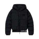 En teknisk, vadderad jacka med huva som kombinerar vind- och vattenresistens med stilrena, mångsidiga linjer. Frontdragkedja, sidofickor och EA7-logodetaljer på bröst och fåll gör den lätt att känna igen, medan den färgblockerade designen och reflektiva detaljer ger ett modernt, sportigt uttryck. Perfekt för både stad och fjäll, denna jacka håller dig varm utan att kompromissa med stilen.