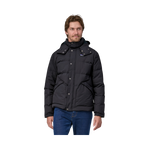 Varm och hållbar dunjacka med retrostil, tillverkad av 100% återvunnen nylon och återvunnet dun. Utrustad med avtagbar huva, flera fickor och justerbara muddar för extra skydd mot kyla. Fair Trade Certified™ och miljövänlig. Perfekt för både stadsliv och äventyr utomhus.