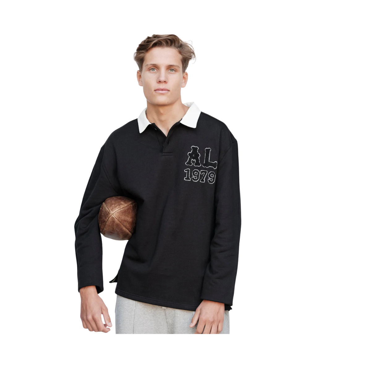 Rugby-inspirerad tröja i 100% bomull med AL1979-brodyr i frotté på bröstet och Acqua Limone-båge tryckt över ryggen. Har en kontrasterande vävd krage och en avslappnad, tvättad finish. Ett nyckelplagg i Ivy League-kollektionen.