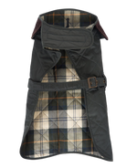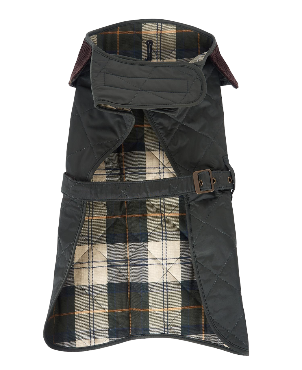 Styckpris / perMörkgrön quiltad hundjacka i polyamid från Barbour. Justerbara remmar, en med kardborre fram och en med spänne under magen. Bruna detaljer i manchester vid kragen och fodrad med rutigt bomullstyg. Patch med logotyp på sidan.