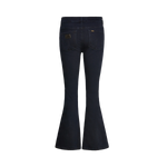 En ikonisk Lois-modell med hög midja och utsvängda ben som skapar en smickrande silhuett. Tillverkade i en mjuk och stretchig denim med mörkblå tvätt för en tidlös look. Perfekta att styla både till vardag och fest.