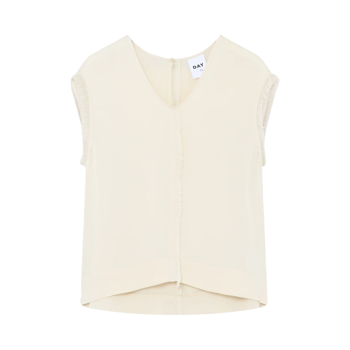 Denna lätta topp har en knappstängning med nyckelhålsöppning baktill, samt fransdetaljer framtill, baktill och på axlarna. Toppen har en något lös passform.