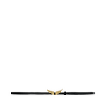 Ett svart bälte från Zadig & Voltaire tillverkat i läder. Spännet är deras klassiska ving-logotyp i guld med strass.