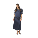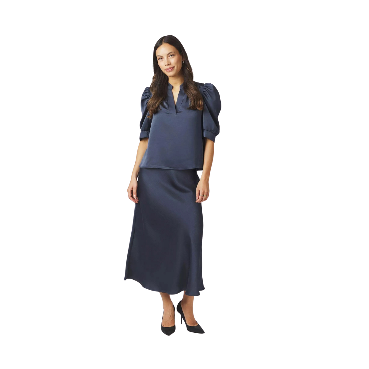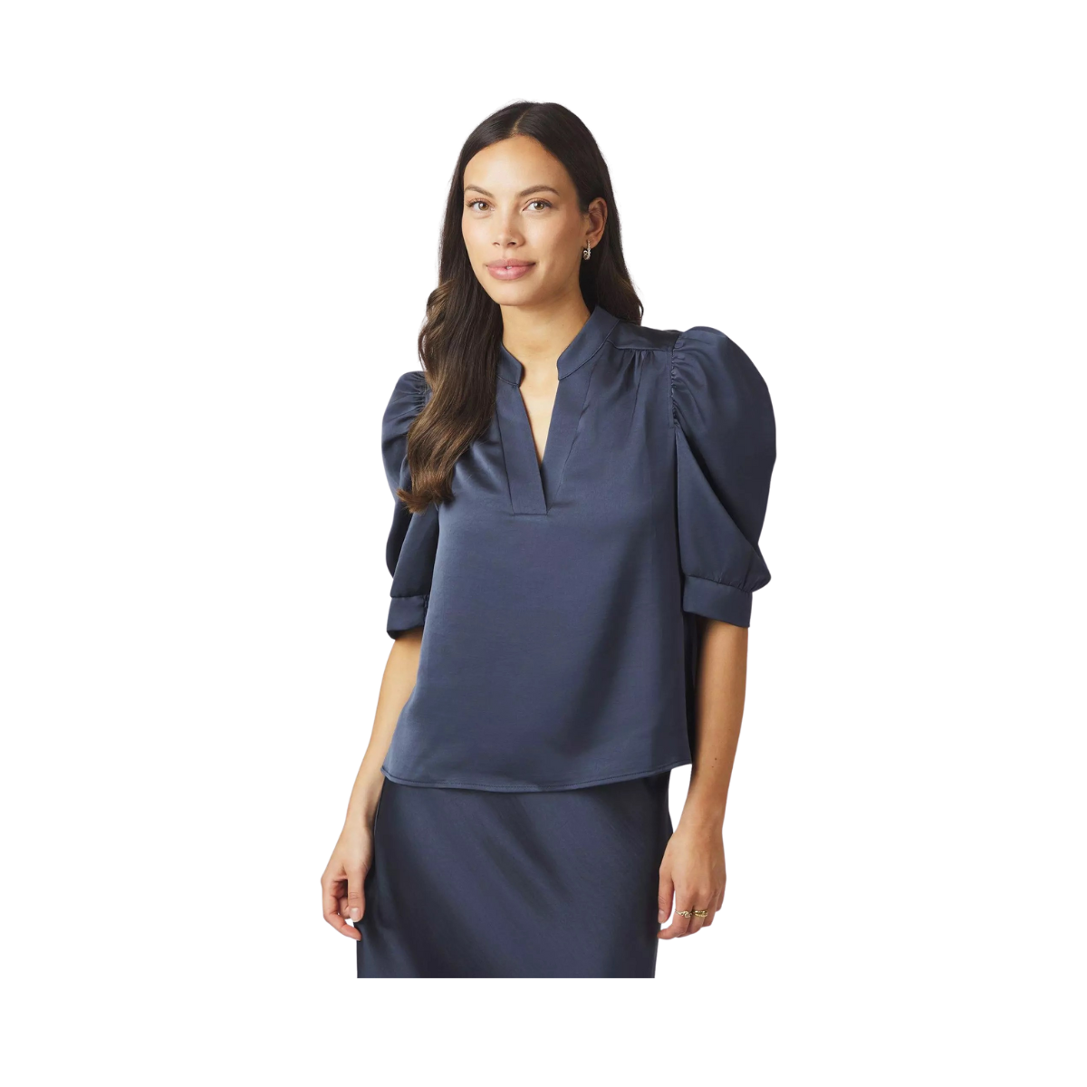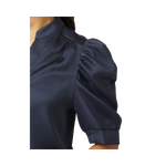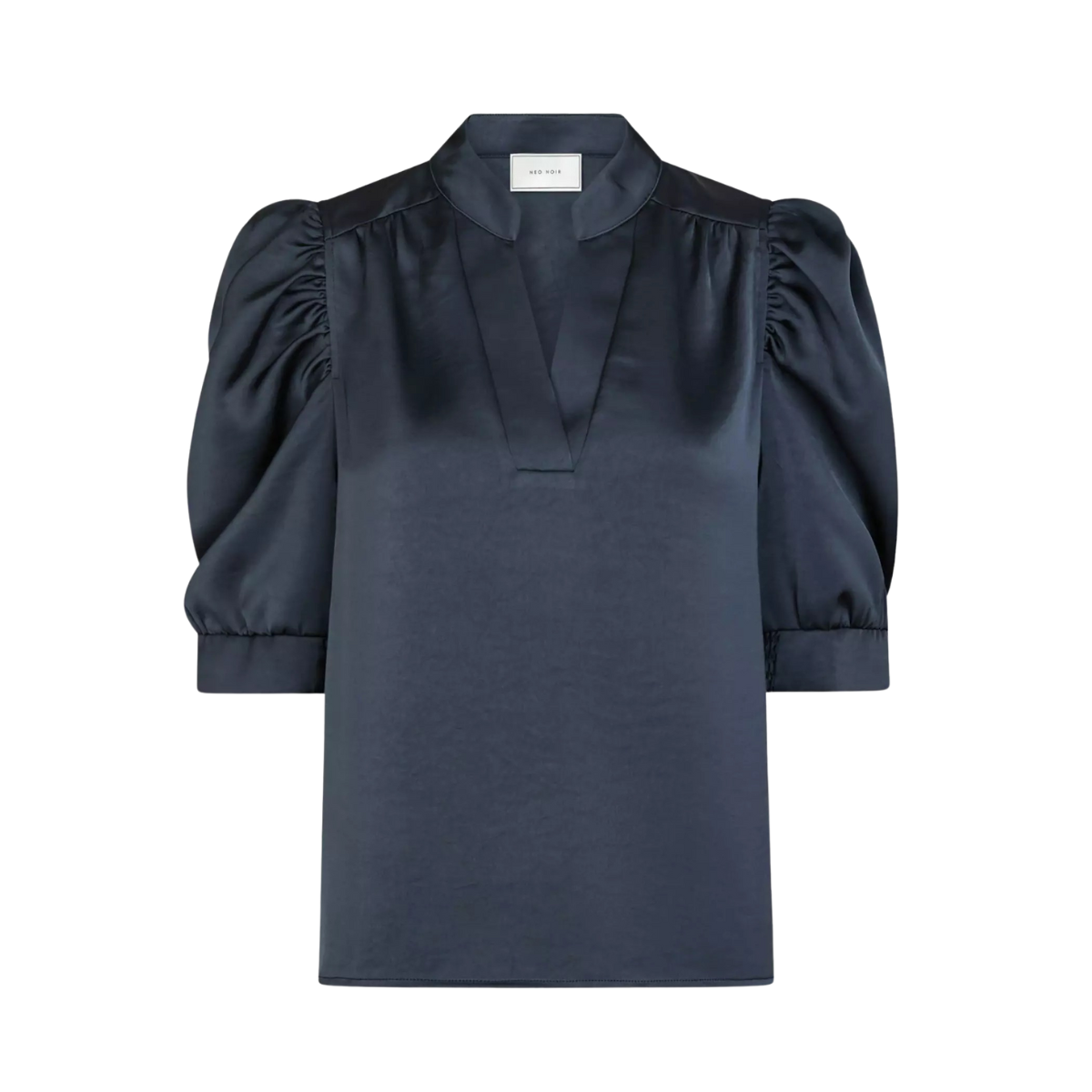 En stilsäker poplinblus med puffig ärm och vacker v-ringning framtill. Baksidan har en diskret rynkdetalj under oket, vilket ger extra rörelse och en fin fallande effekt. Ärmarna avslutas med breda manschetter.