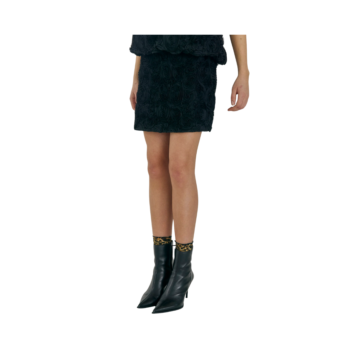 En elegant kjol med subtil blomsterbrodyr och lätt, strukturerad siluett. Designad för en feminin och sofistikerad look – perfekt att styla både till toppar från samma kollektion eller som en fristående statement-piece.