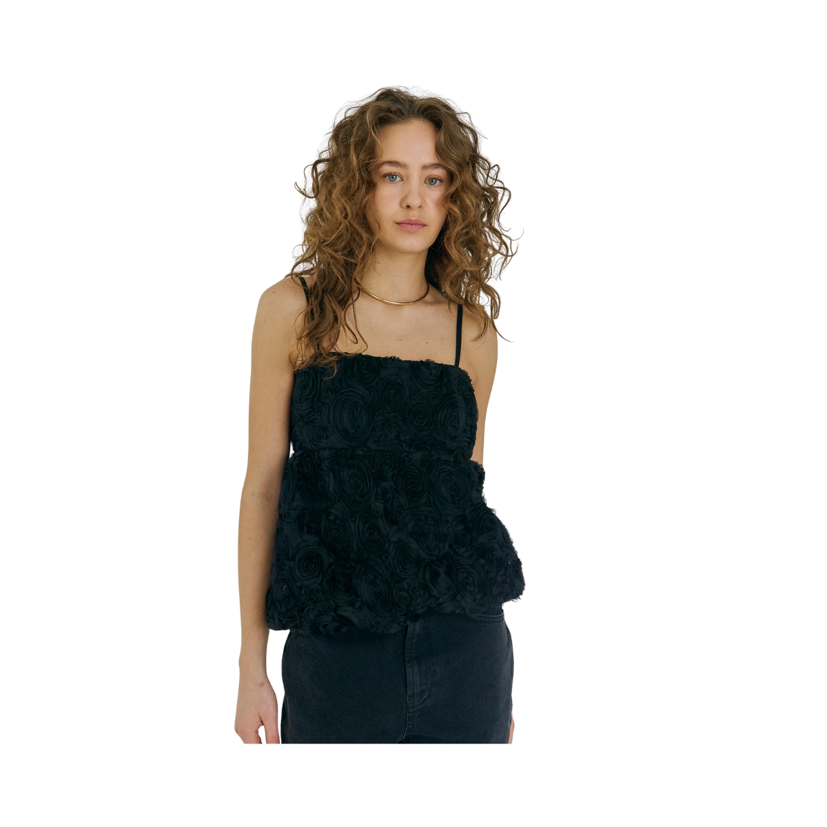 En feminin topp med subtil blomsterbrodyr och lätt, luftig passform. Designad för enkelhet och elegans – perfekt att styla både till vardag och festliga tillfällen.